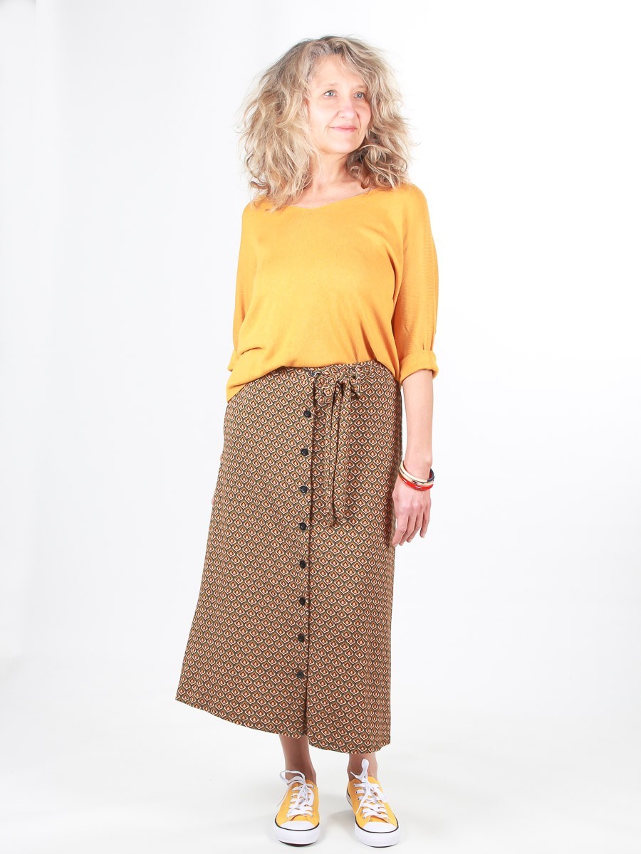 La petite jupe Lanna: On adore sa coupe style jupe tennis avec ses poches latérales et son boutonnage devant, cette jupe à l'avantage d'être en jersey viscose, fluide confortable. Elle fait partie des petites jupes facile à mettre. On craque sur son style rétro