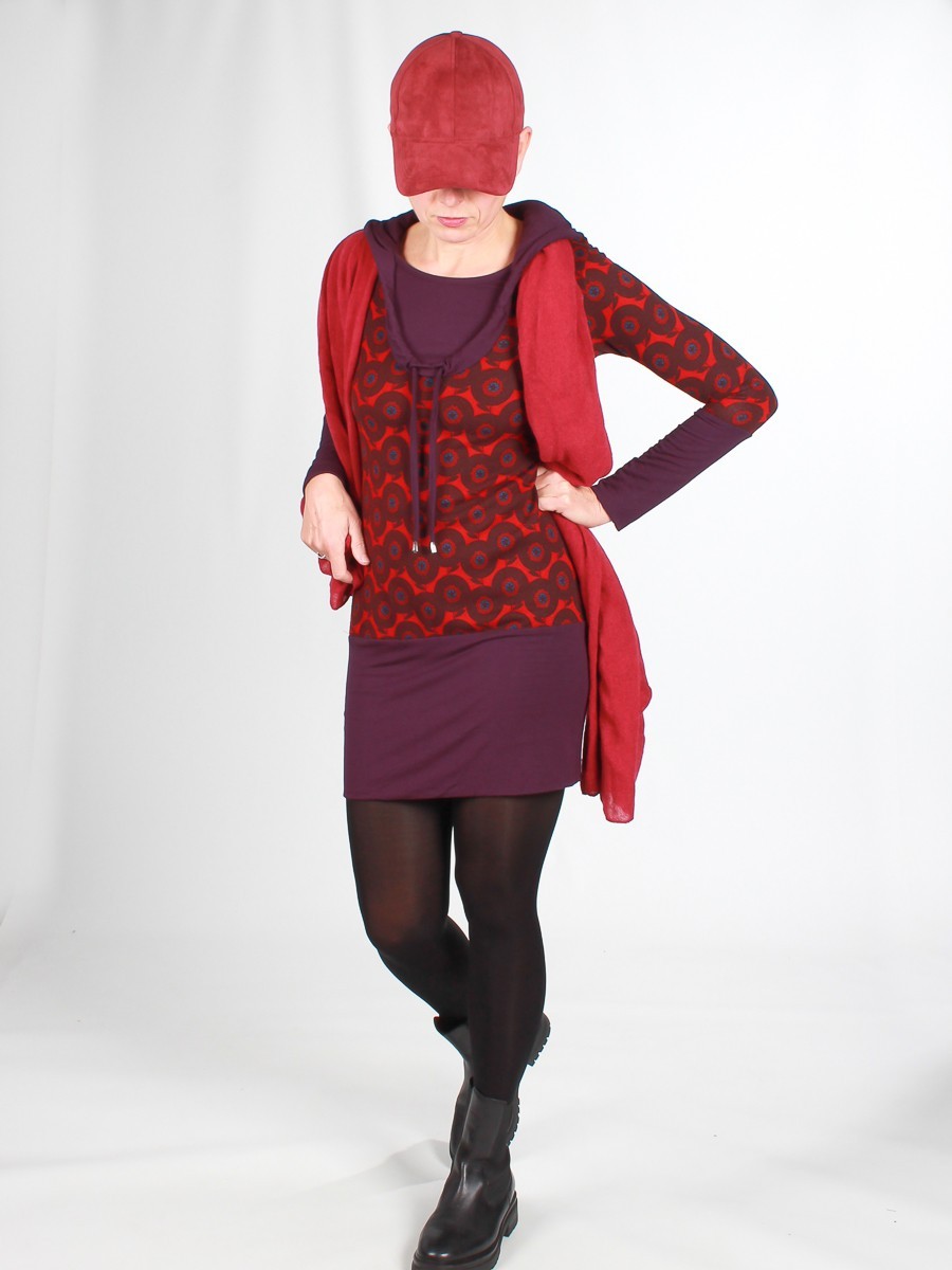 À porter près du corps, large bande unie dans le bas et sur les manches. Capuche à liens pour froncer le col