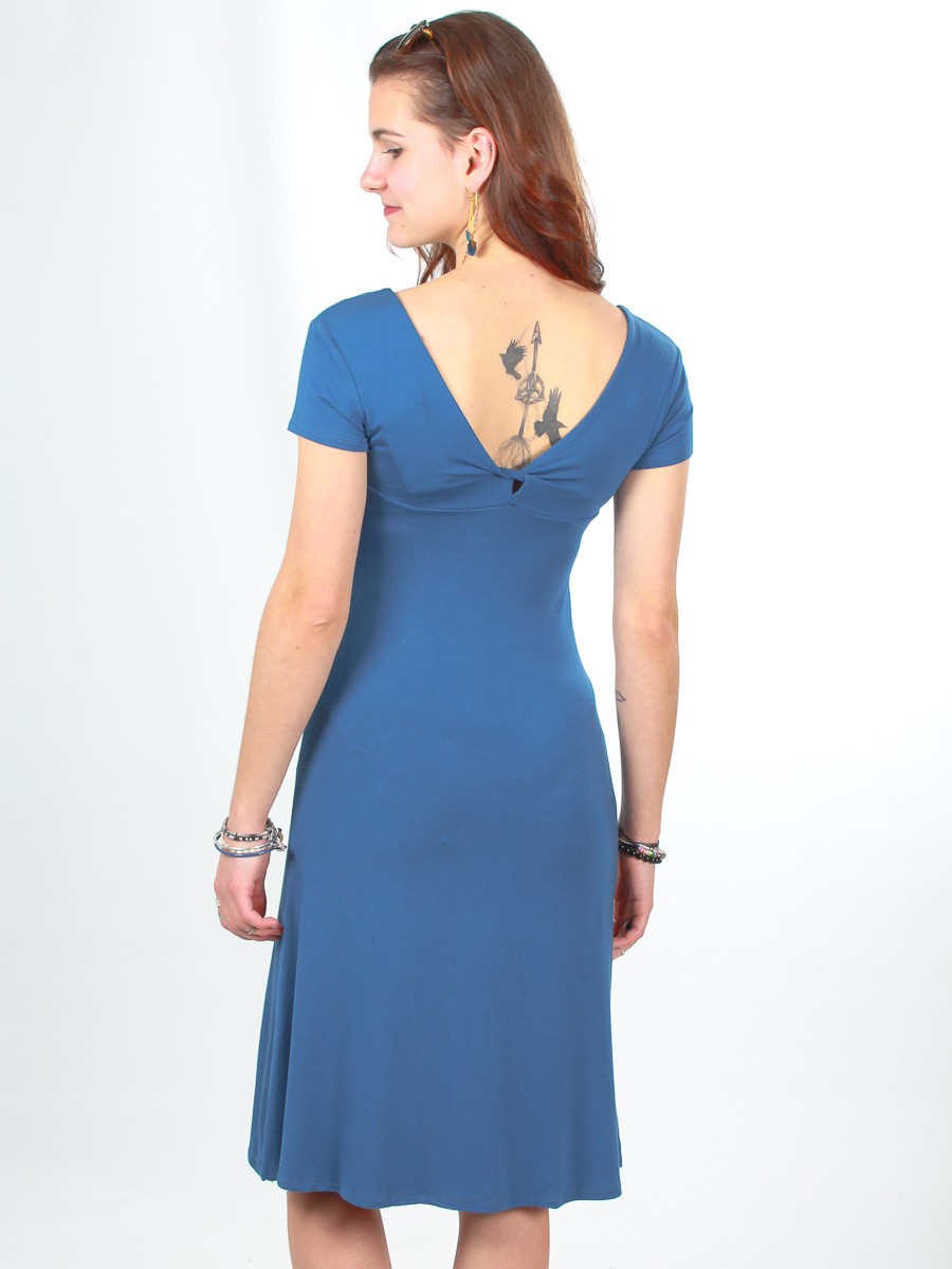 Robe empire à manches courtes, double encolure en V avec détails noeuds à l'avant et à l'arrière