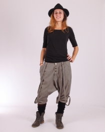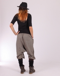 Le p'tit conseil taille de Lilalilou : ce sarouel est en taille unique, mais sa ceinture smokée permet de le porter d'une taille S (36) en taille basse, jusqu'à une grande taille L (42) en taille haute.