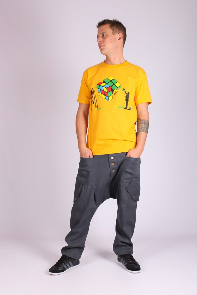 • Sarouel à entrejambe basse (aux genoux). 4 poches, dont 2 à rabats