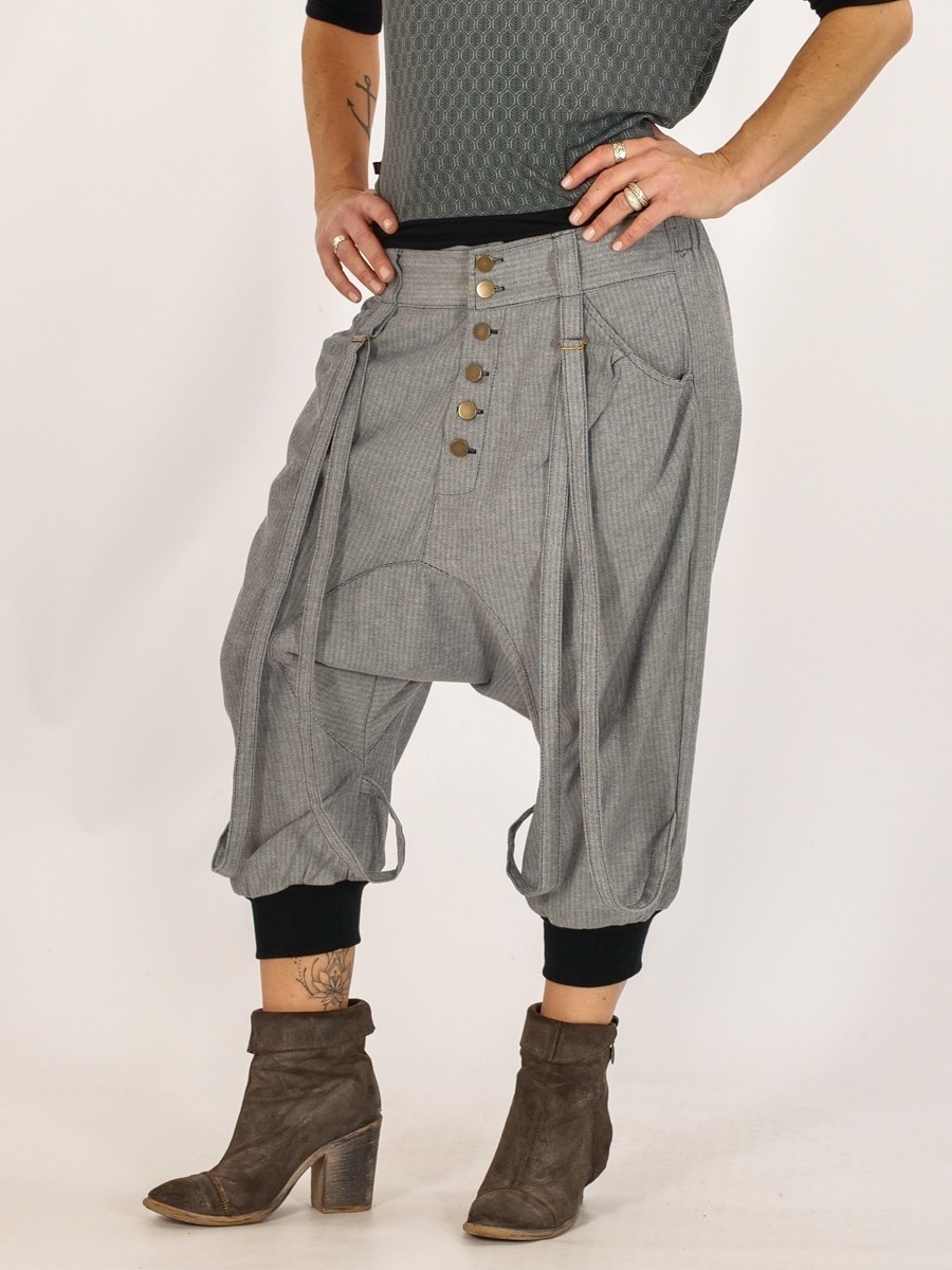 L'incontournable sarouel court à bretelles, original et chic de la collection Lilalilou.