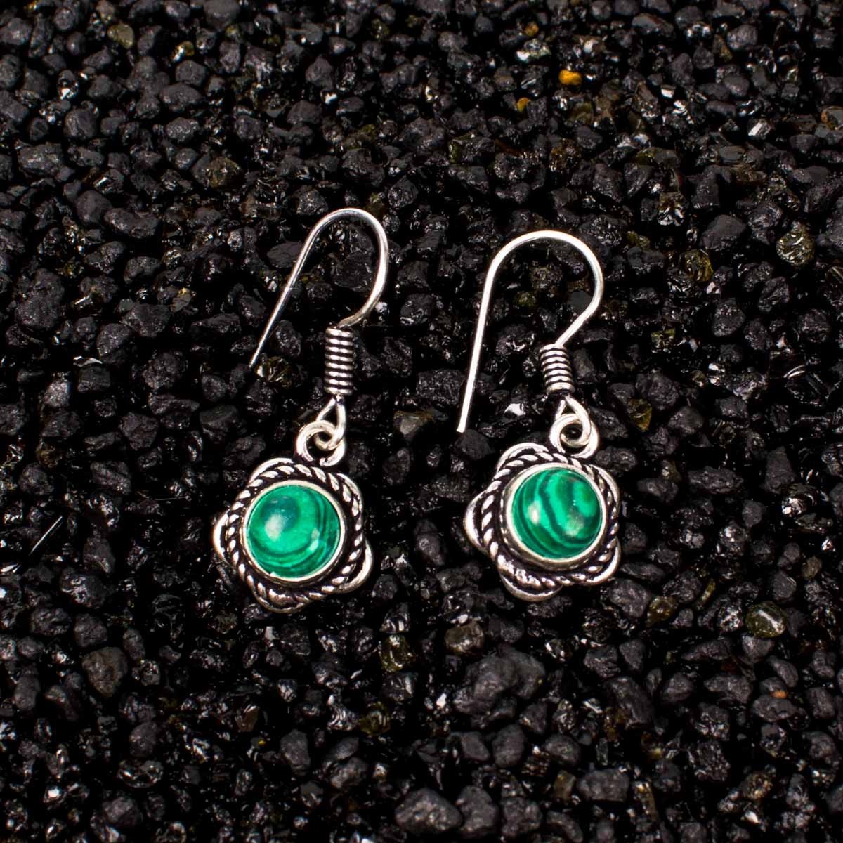 Boucles d'oreilles en forme de fleur et détails torsadés en relief, agrémenter d'une pierre de malachite