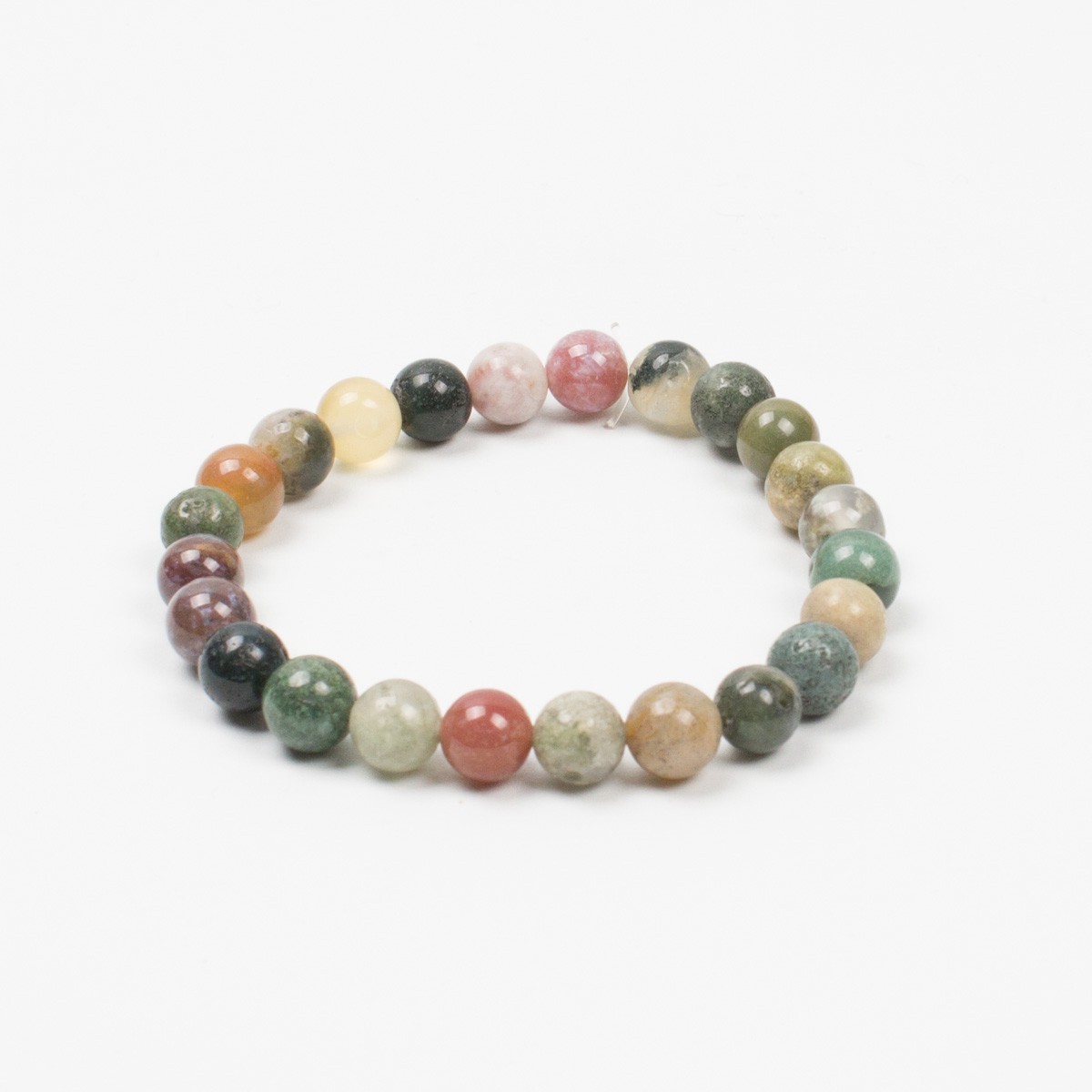 L'agate indienne aide à guérir de nombreuses pathologies en lien avec le système lymphatique et intestinal. Bracelet monté de pierres naturelles sur élastique.