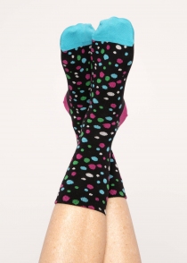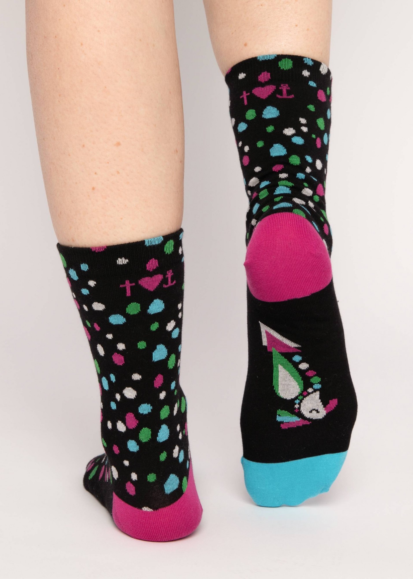 Des pieds colorés et festifs avec des chaussettes en coton bio pour marcher au rythme de la bonne humeur.