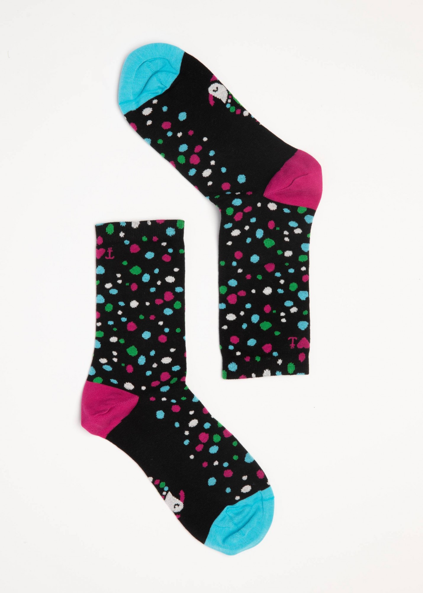 Faites la fête à chaque instant avec Confetti Party ! Ces chaussettes explosent de couleurs et de gaieté. Le coton bio respirant régule parfaitement la température tandis que l'élasticité assure un ajustement sans faille. Proposées en taille unique (36-40), elles transforment même les journées ordinaires en moments festifs et apportent cette touche d'originalité qui fait sourire votre entourage.