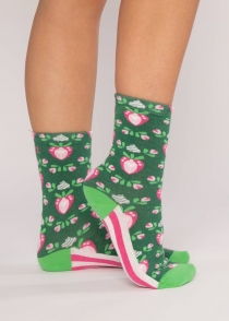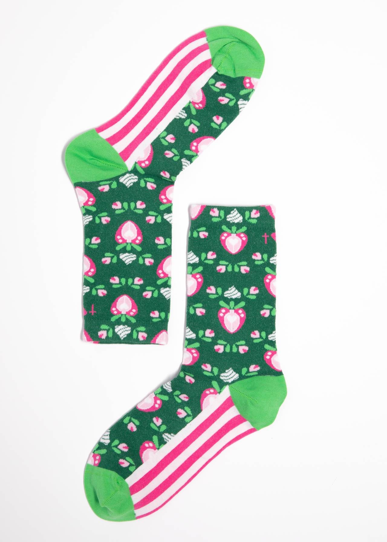 Savourez le confort avec Cream on Top ! Confectionnées dans un coton bio soyeux et extensible, ces chaussettes se distinguent par leur légèreté remarquable. Le tissu respirant maintient vos pieds dans un environnement sain et agréable tout au long de la journée. Leur coupe en taille unique (36-40) s'adapte avec précision pour un ajustement parfait. Les motifs gourmands ajoutent cette touche sucrée qui égaie instantanément votre style.