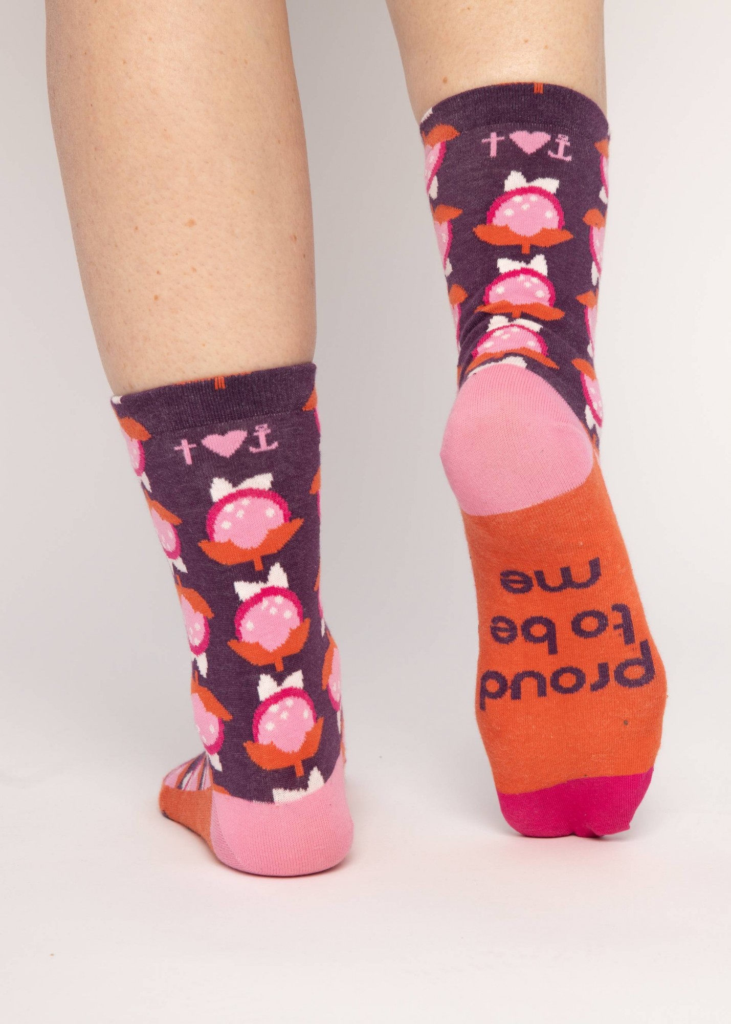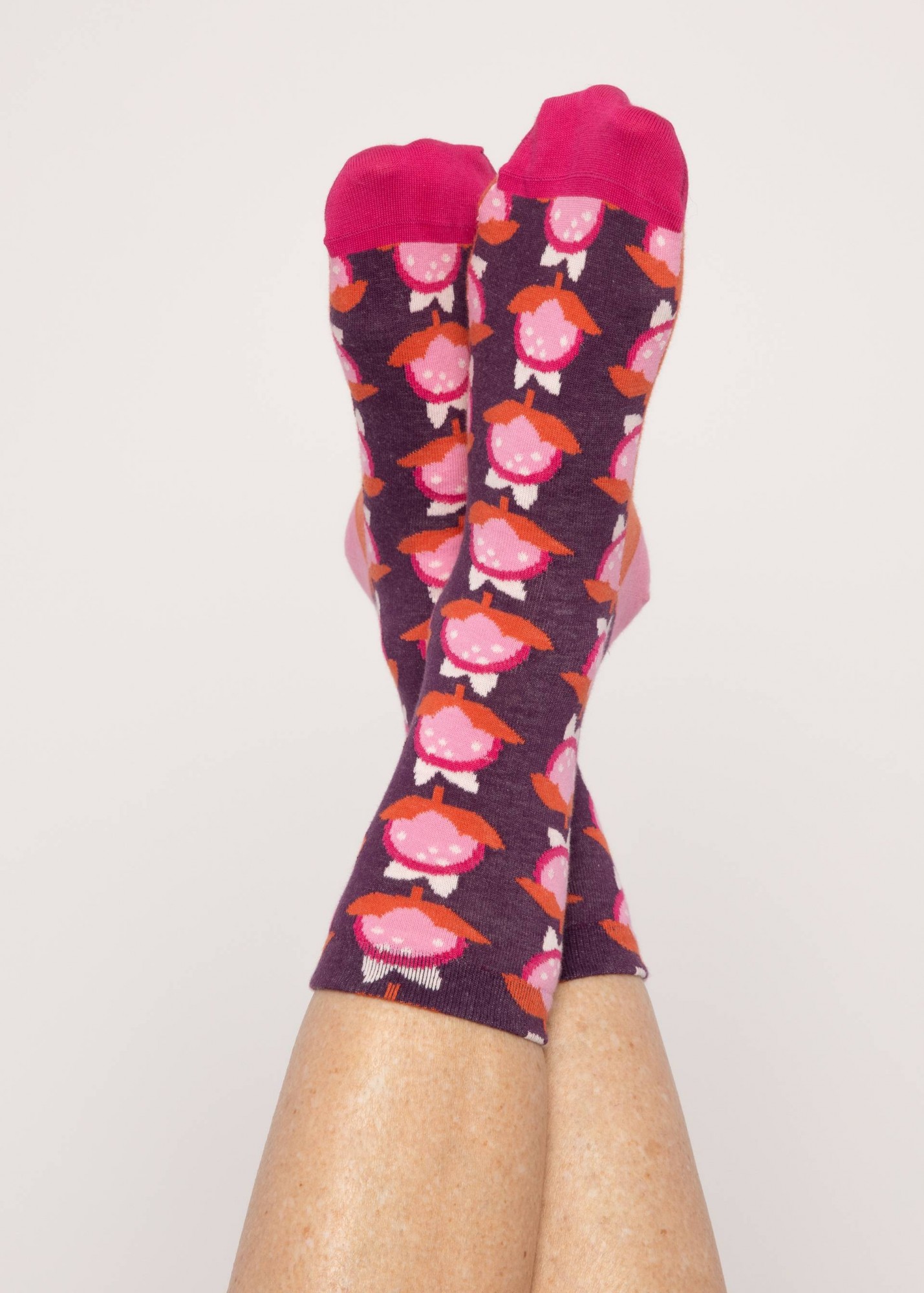 Deux pieds en voyage vers une île imaginaire avec des chaussettes douces et confortables en coton bio.