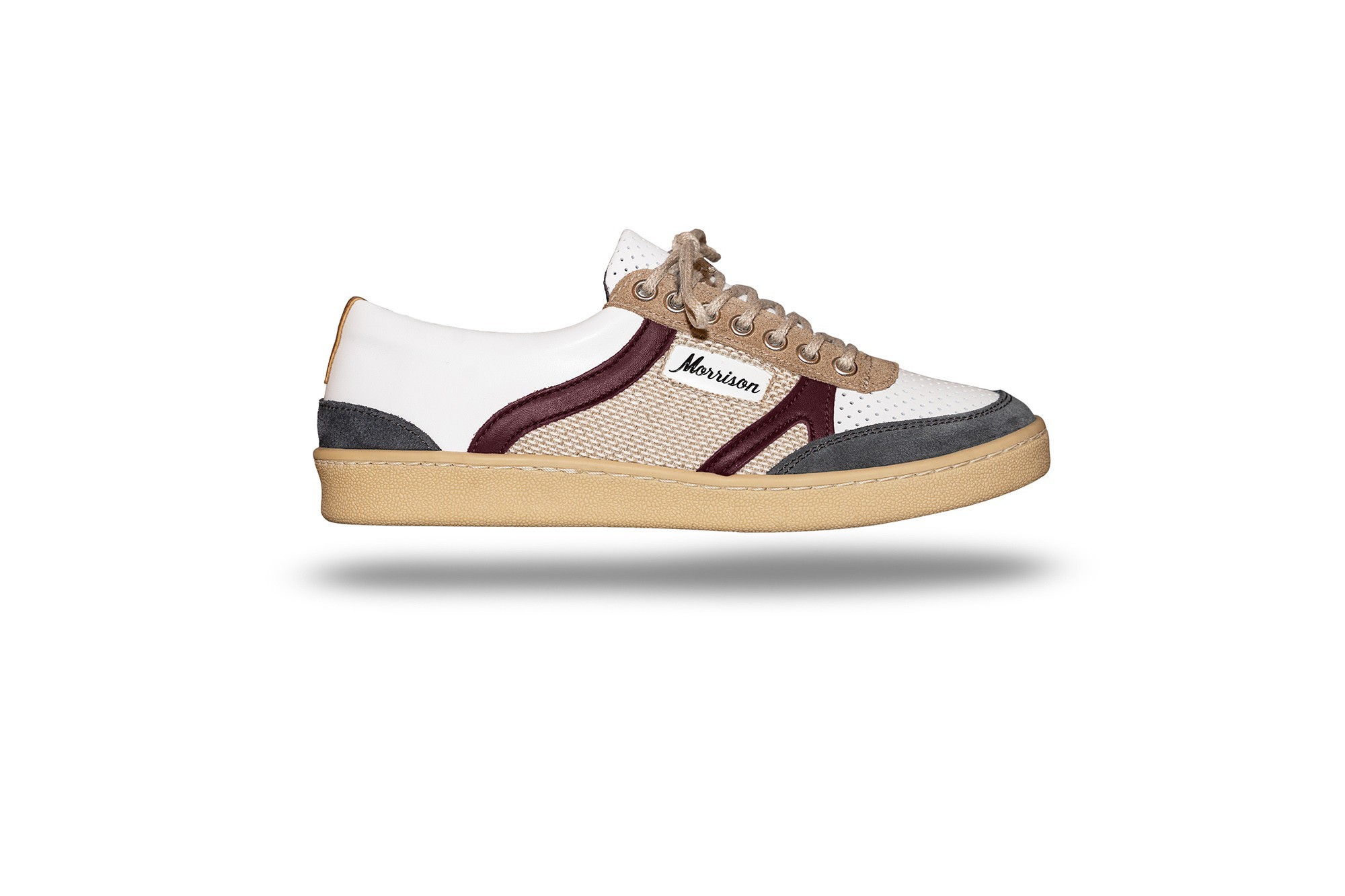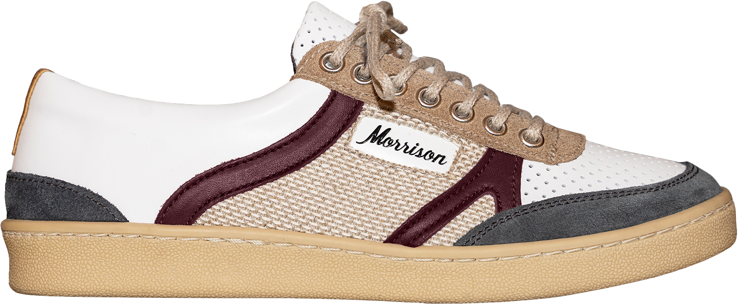 Leur combinaison de couleurs grenat, gris, beige et leur texture de lin et de coton recyclé en font une chaussure discrète et polyvalente