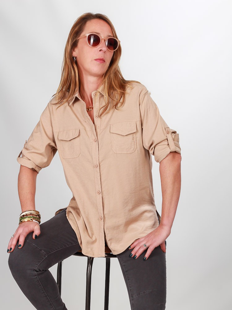 Polyvalente et stylée, cette chemise se porte aussi bien en surchemise ouverte qu'en chemise classique fermée.
