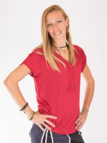 • Manches courtes, agrémentées d'une boutonnière pour les froncer