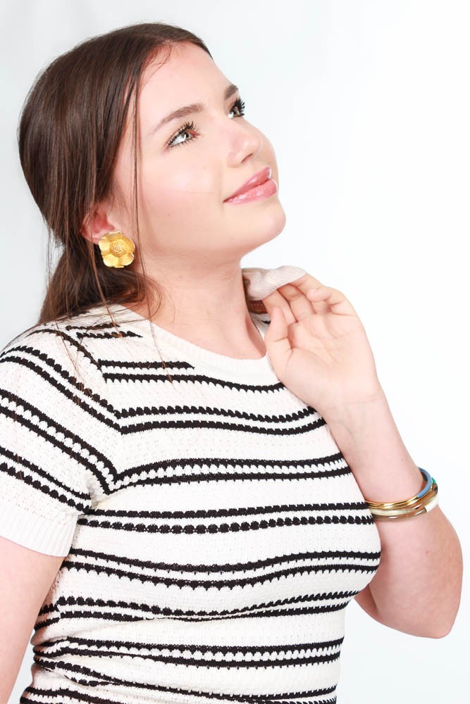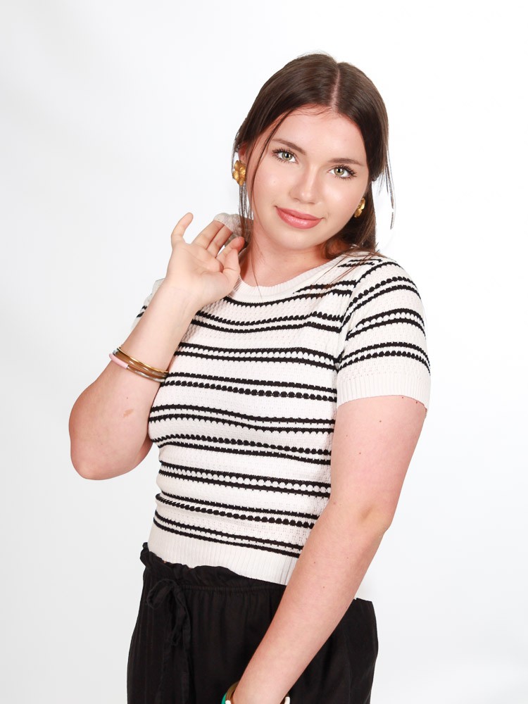 Apportez une touche de légèreté et de raffinement à votre ce petit haut au style marinière à la maille ajourée.