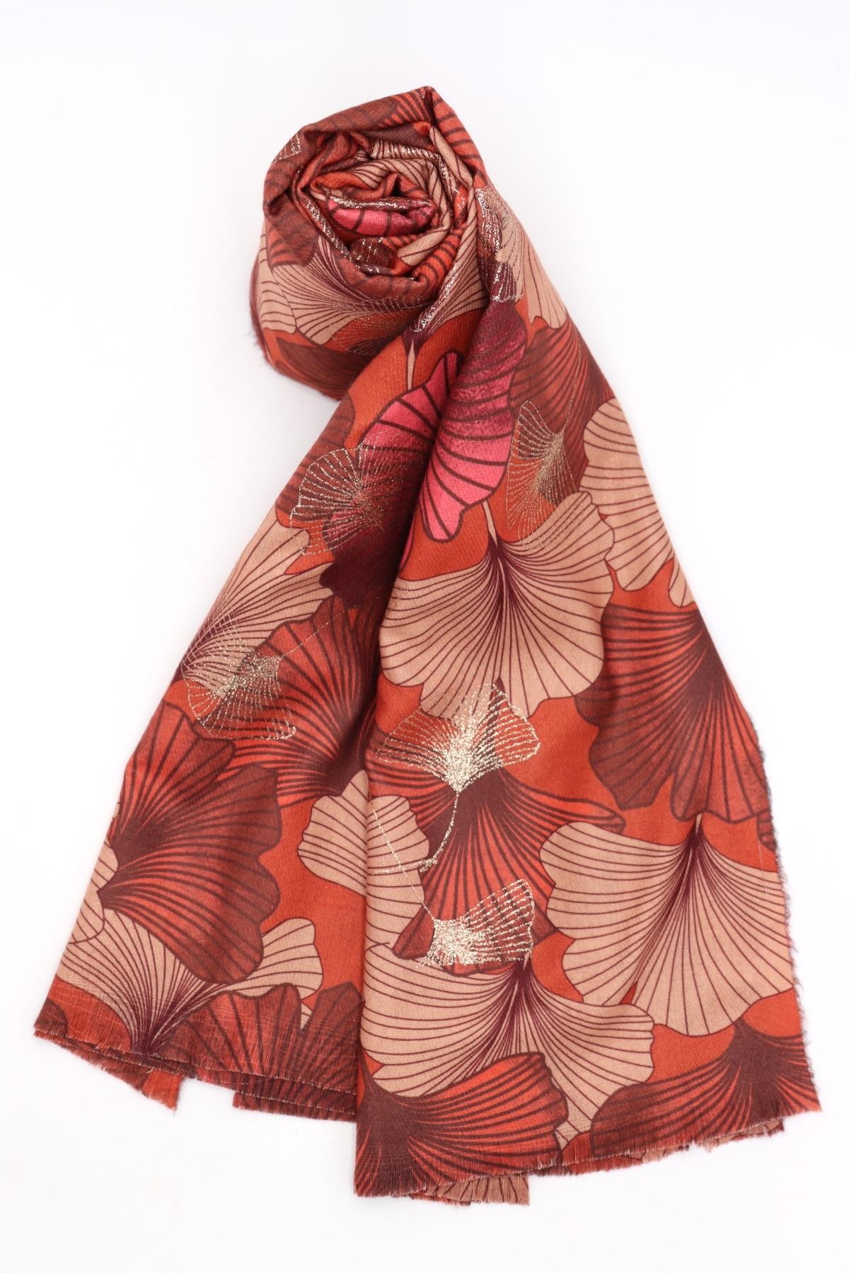 Echarpe gingko brique
