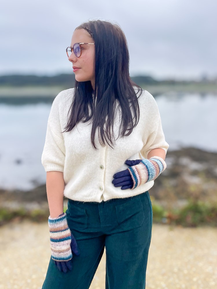 Gant suédine + mitaines rayé bleu - set gant suédine + mitaines femme