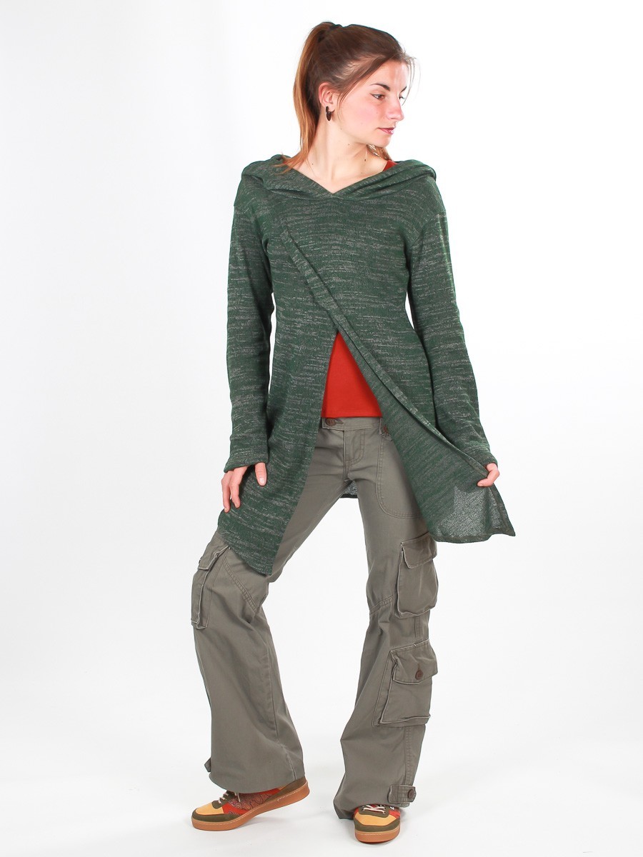 Accueil > Femmes > Pulls et gilets > Gilets et ponchos > Gilet long à capuche Pixie vert