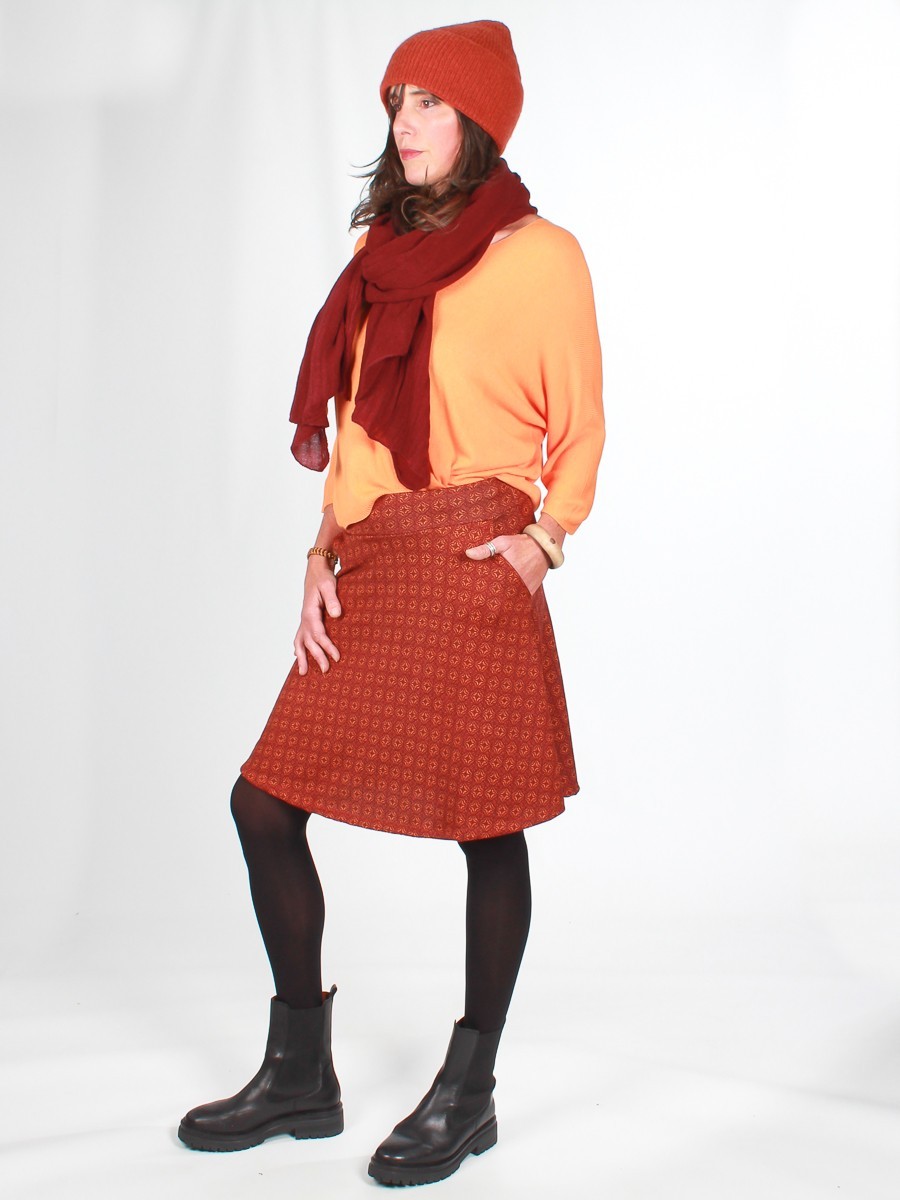 Jupe trapèze au-dessus du genou pour un look Classic revisité. A porter avec un col roulé ou notre collection de petits pulls pepsy, pour vous assurer un style totalement groovy