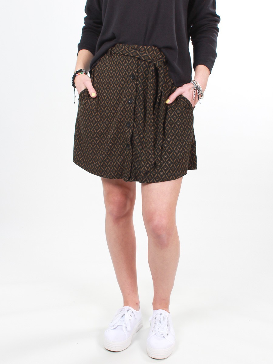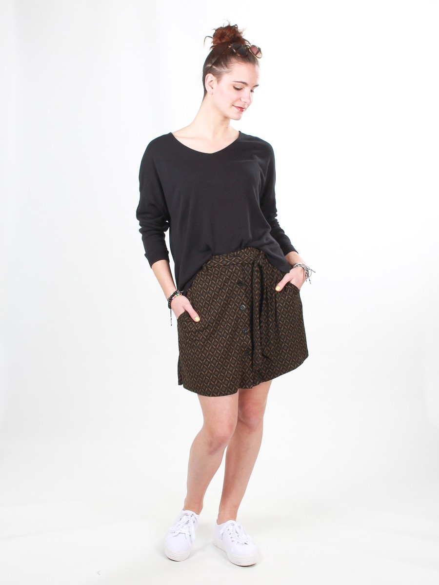 La petite jupe Lanna: On adore sa coupe style jupe tennis avec ses poches latérales et son boutonnage devant, cette jupe à l'avantage d'être en jersey viscose, fluide confortable. Elle fait partie des petites jupes facile à mettre. On craque sur son style rétro
