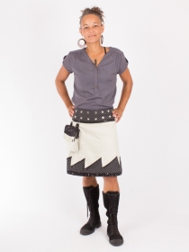 La jupe réversible Jag Design est faite de 2 matières, une fusion de jolis cotons imprimés et de suédine gaufrée