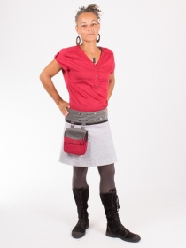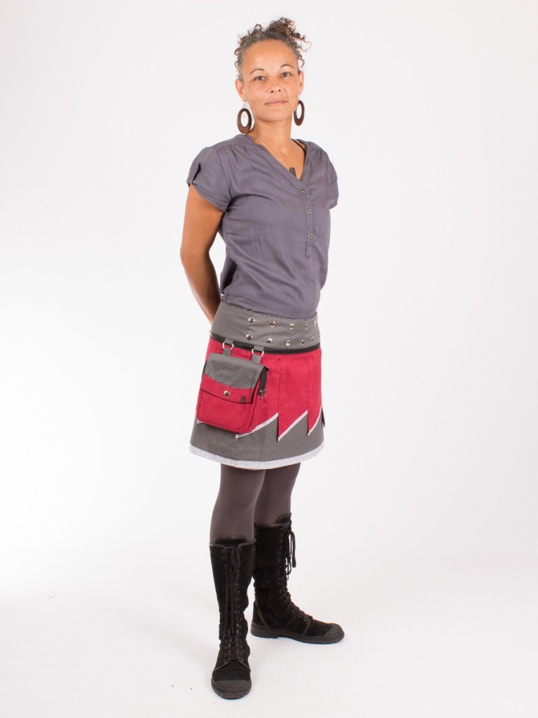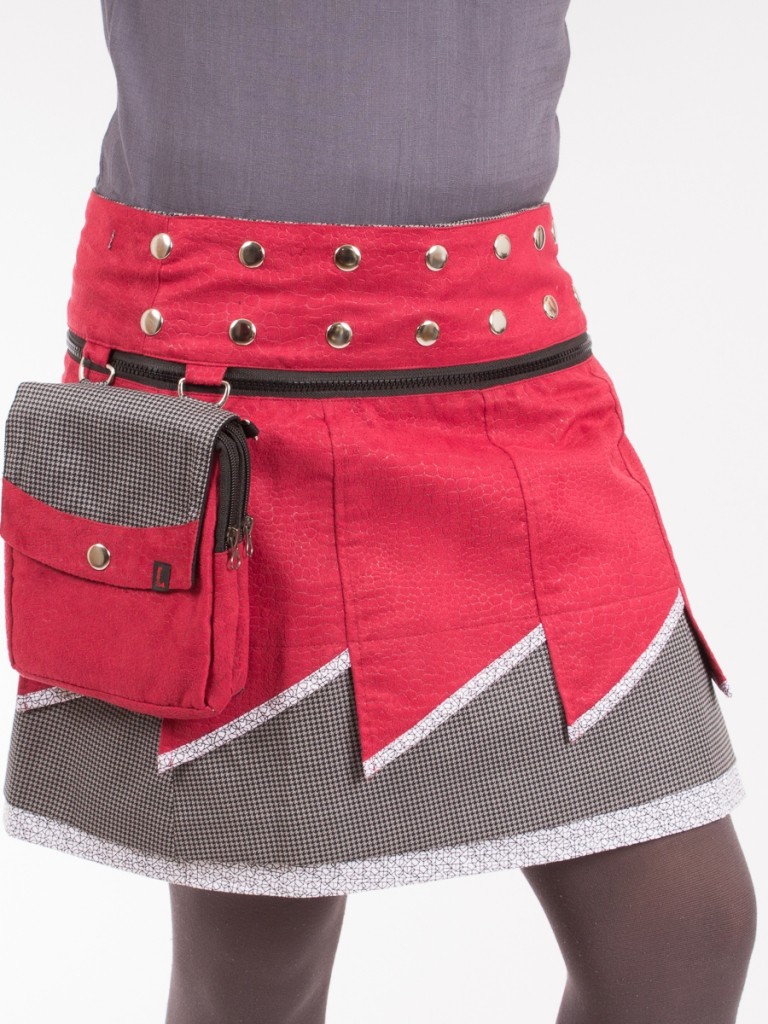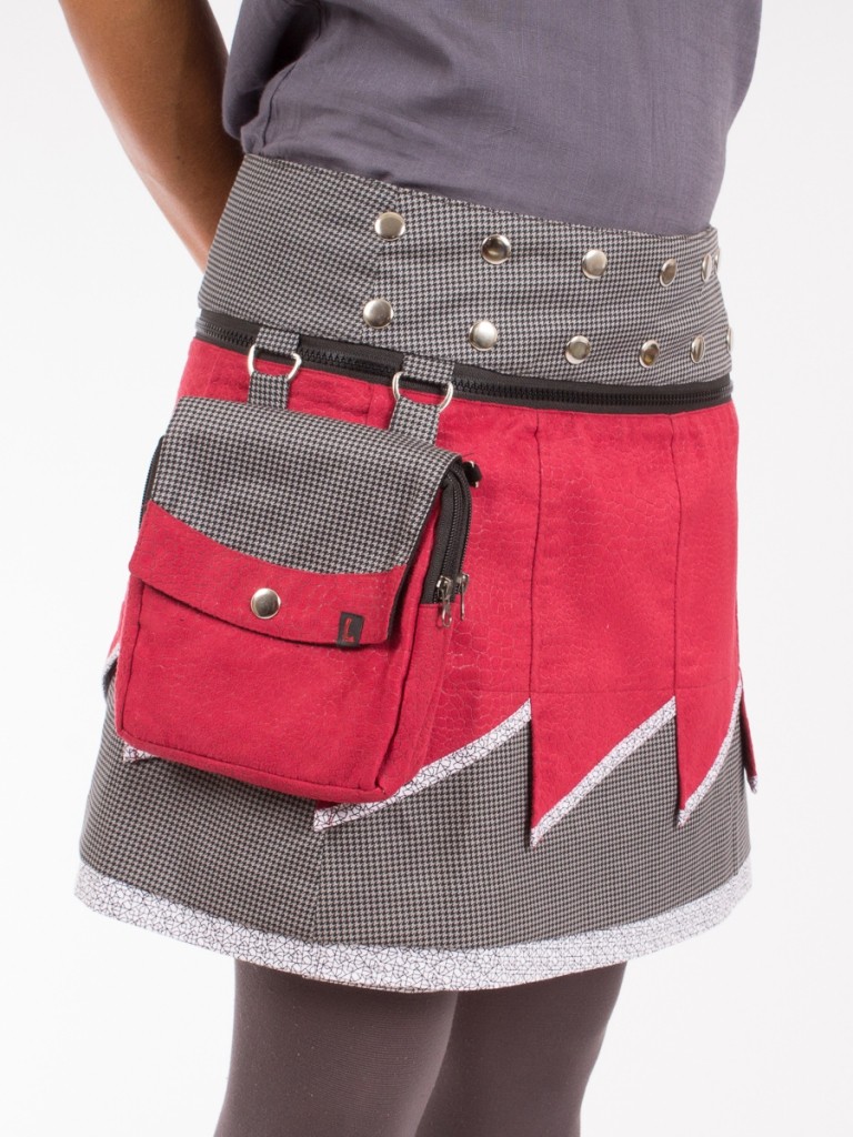 • La pochette est détachable de la jupe et est munie d'un cordon réglable qui vous permettra aussi de la porter seule mais aussi à la ceinture grâce à ses boutons pops
