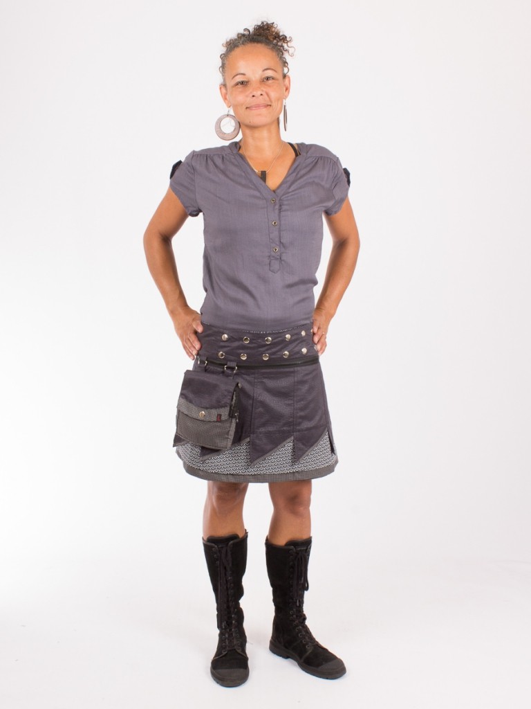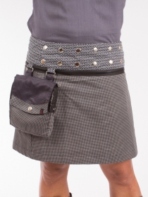 • La pochette est détachable de la jupe et est munie d'un cordon réglable qui vous permettra aussi de la porter seule mais aussi à la ceinture grâce à ses boutons pops