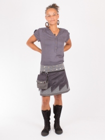 La jupe réversible Jag Design est faite de 2 matières, une fusion de jolis cotons imprimés et de suédine gaufrée