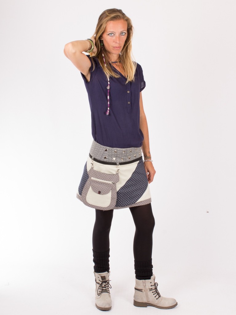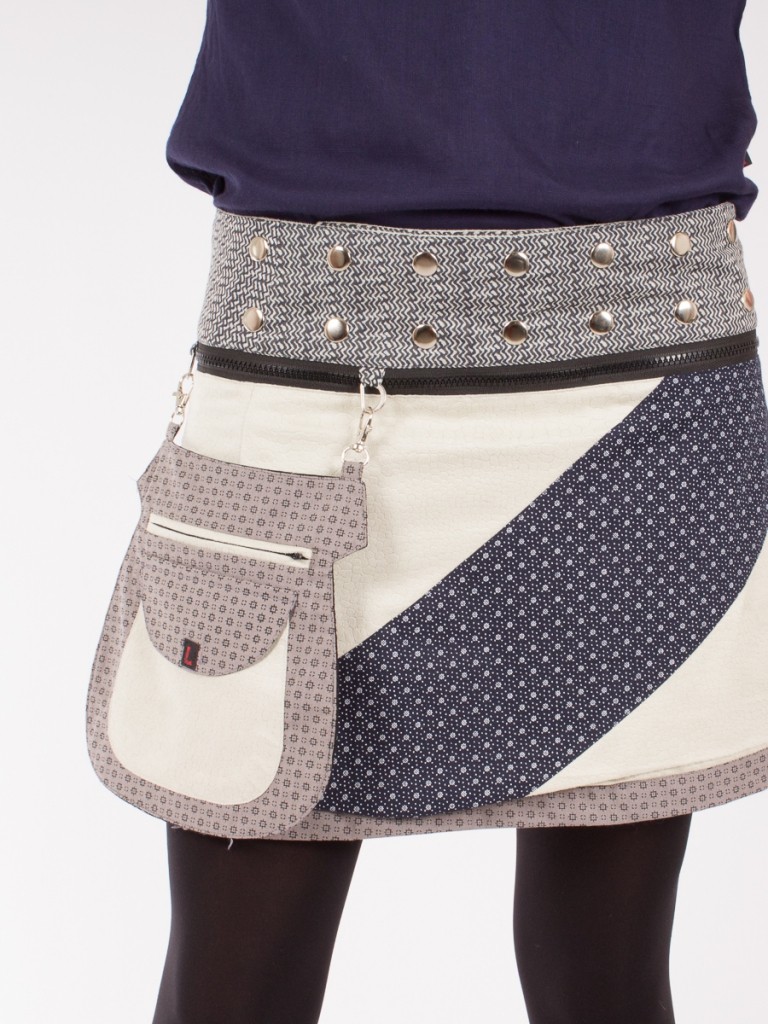 Réversible 4 fois, un zip contenu dans la ceinture permet d'en switcher le sens. Celui du pan de jupe aussi Elle peut être portée seule, en sur-jupe ou mini-jupe avec des collants chauds l'hiver !