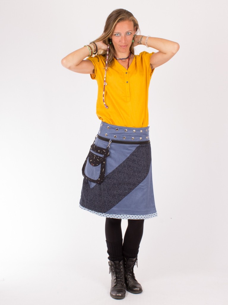 Réversible 4 fois, un zip contenu dans la ceinture permet d'en switcher le sens. Celui du pan de jupe aussi Elle peut être portée seule, en sur-jupe ou mini-jupe avec des collants chauds l'hiver !