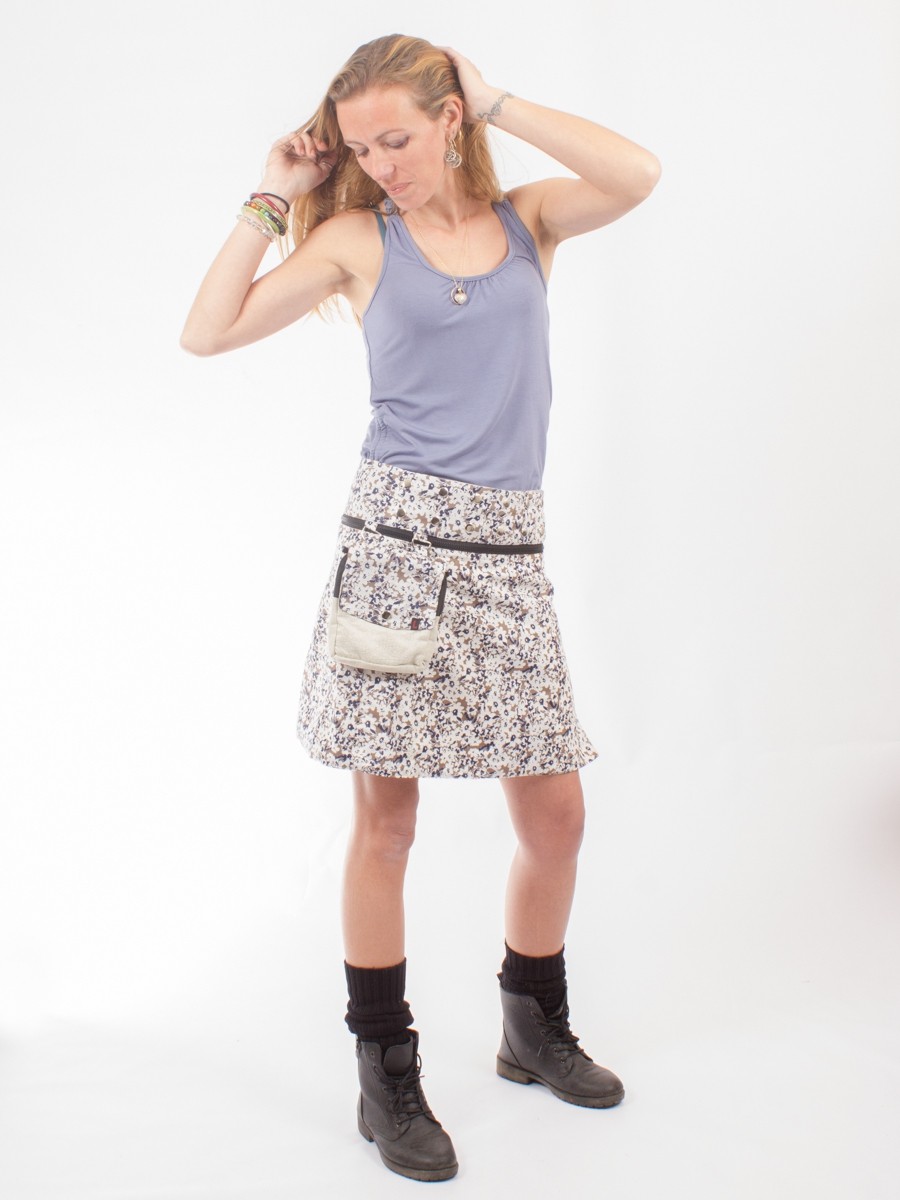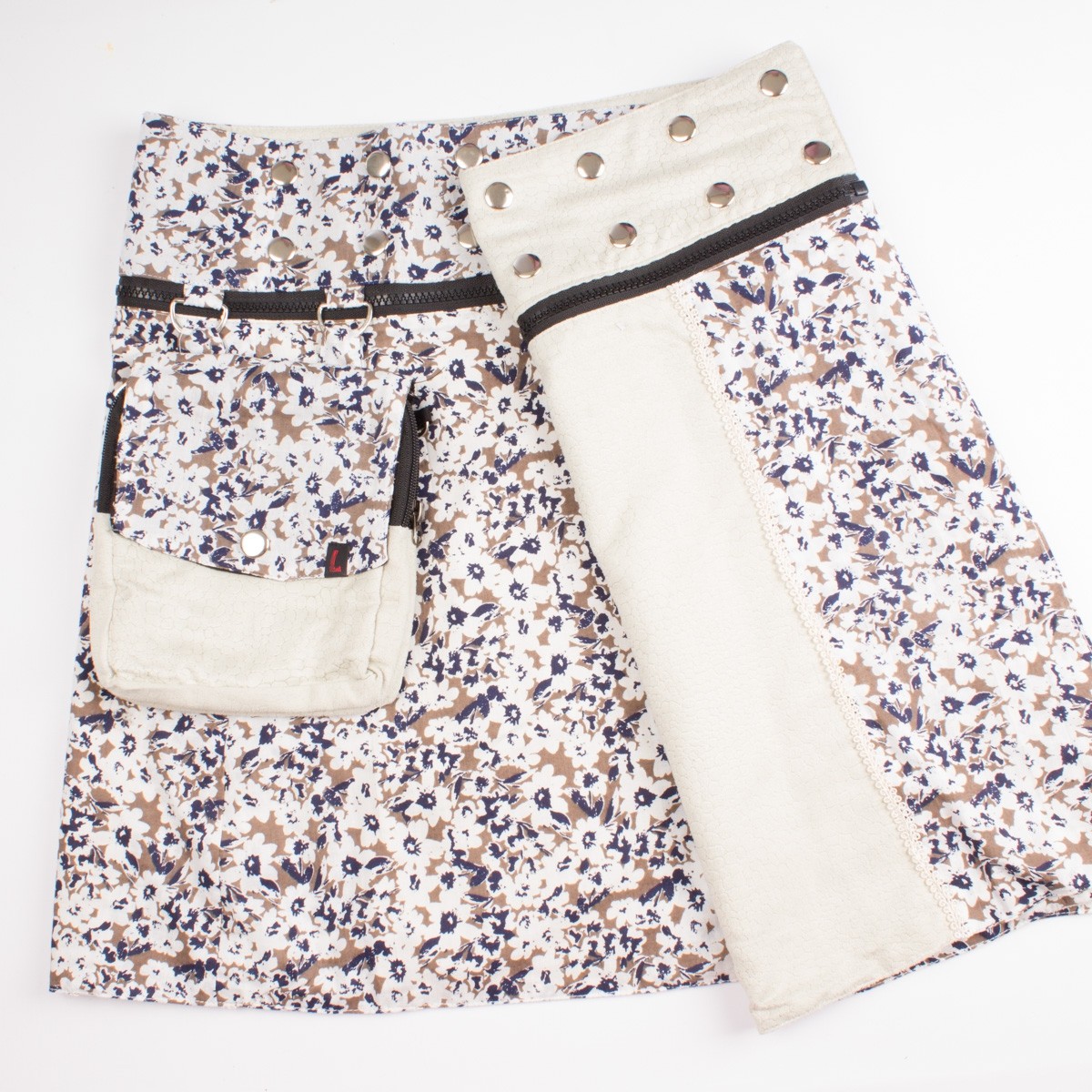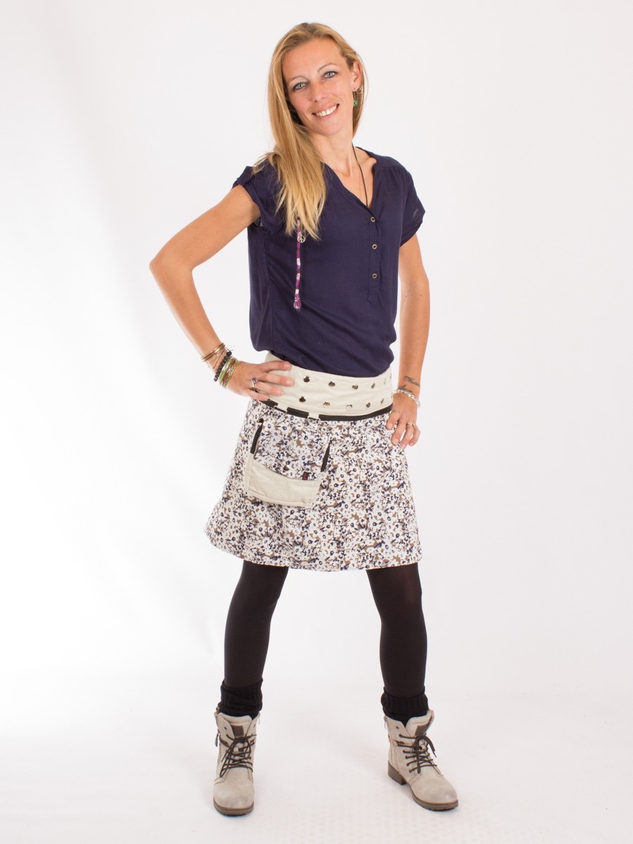 Réversible 4 fois, un zip contenu dans la ceinture permet d'en switcher le sens. Celui du pan de jupe aussi Elle peut être portée seule, en sur-jupe ou mini-jupe avec des collants chauds l'hiver !