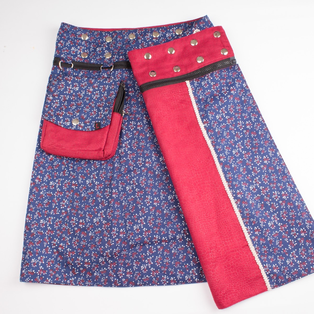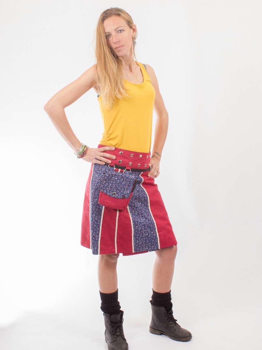 Réversible 4 fois, un zip contenu dans la ceinture permet d'en switcher le sens. Celui du pan de jupe aussi Elle peut être portée seule, en sur-jupe ou mini-jupe avec des collants chauds l'hiver !