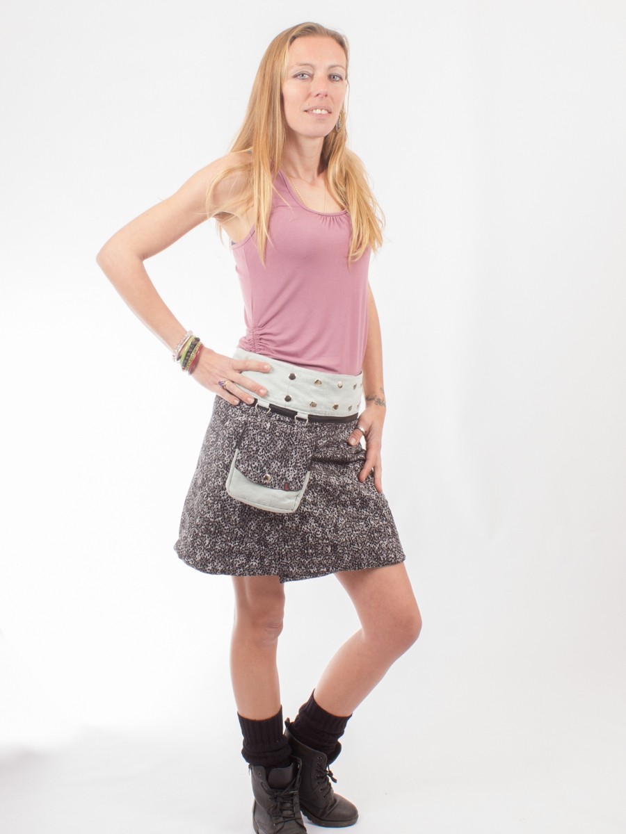 Réversible 4 fois, un zip contenu dans la ceinture permet d'en switcher le sens. Celui du pan de jupe aussi Elle peut être portée seule, en sur-jupe ou mini-jupe avec des collants chauds l'hiver !