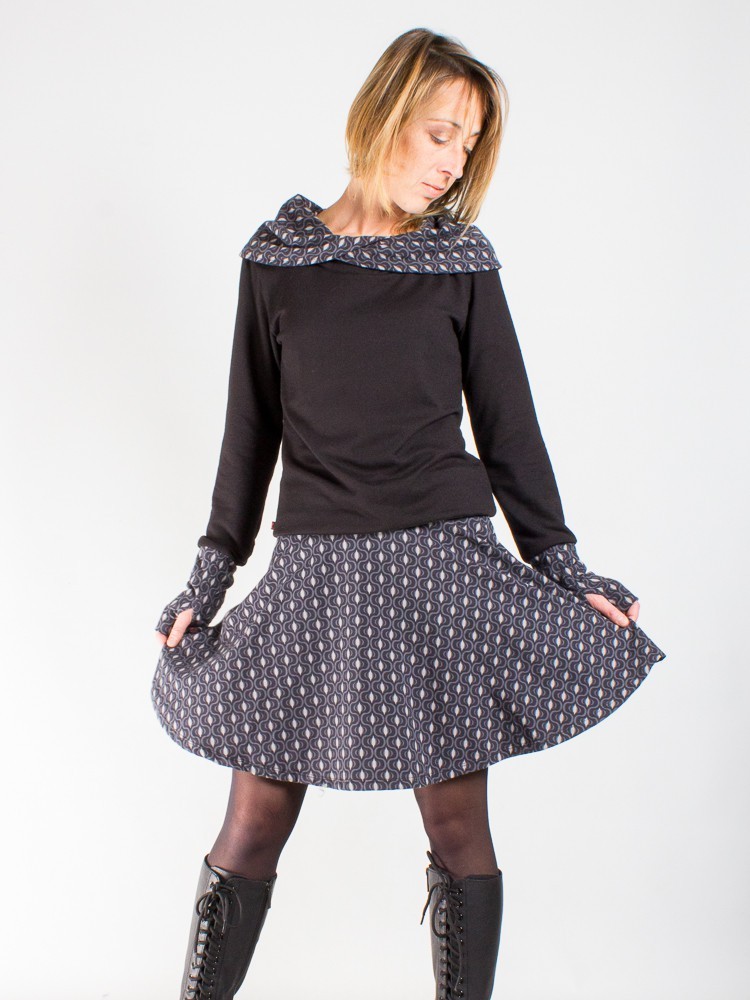 Jupe très féminine, fluide par sa forme, coupe patineuse, matière jersey.