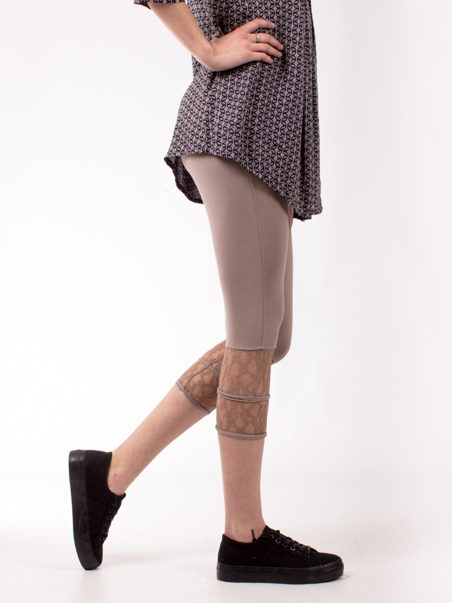 • Legging mi-long décoré de jolies partie en dentelles dans le bas