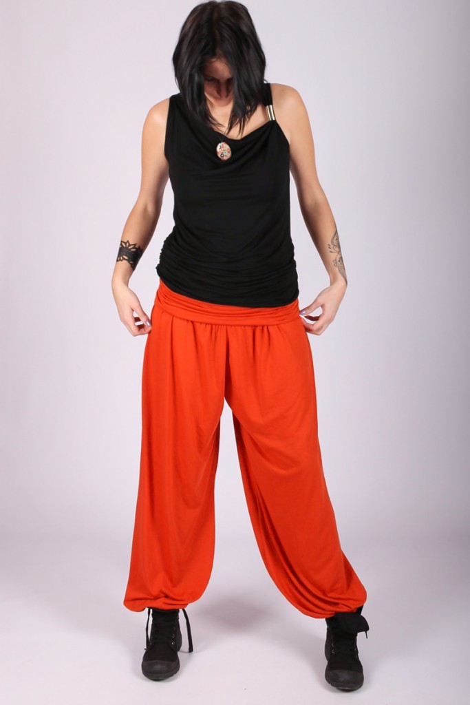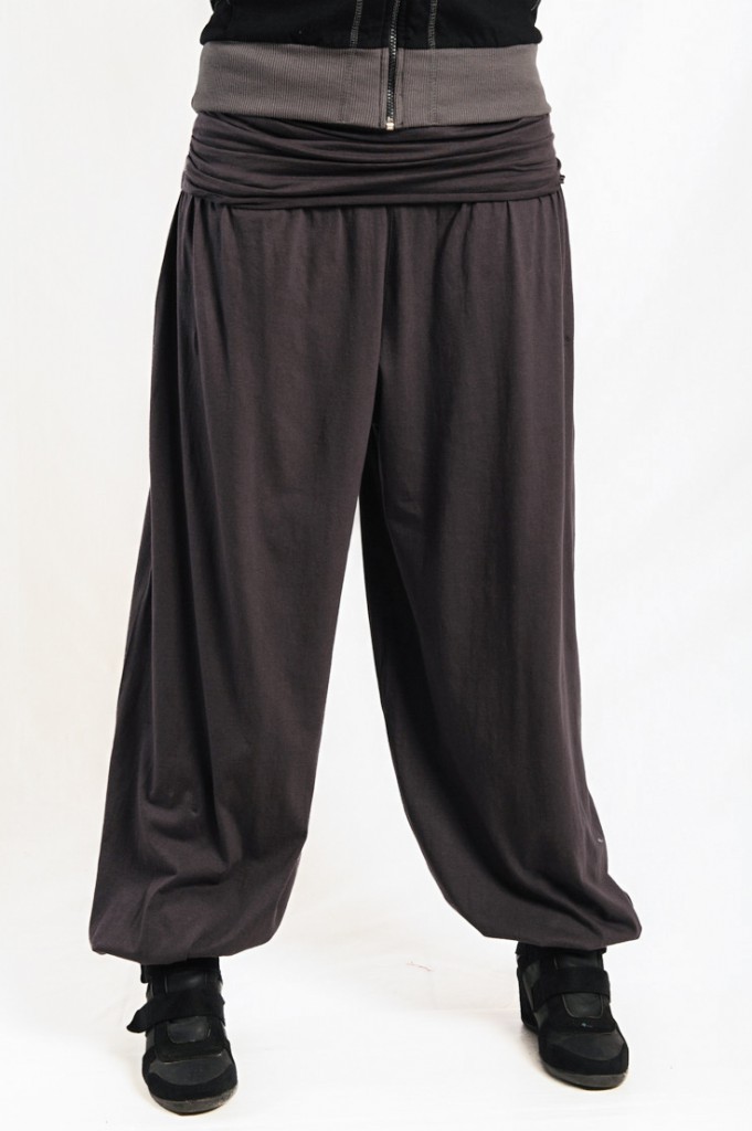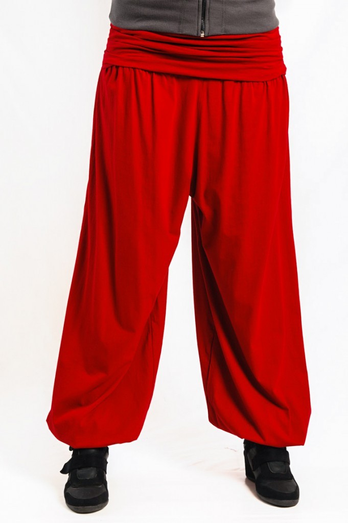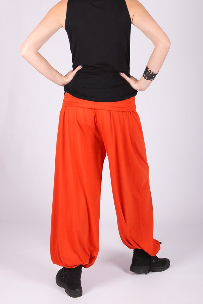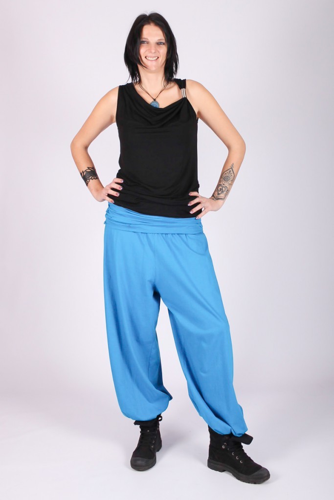 Pantalon bouffant, large bande coton à la taille et élastiqué aux chevilles.