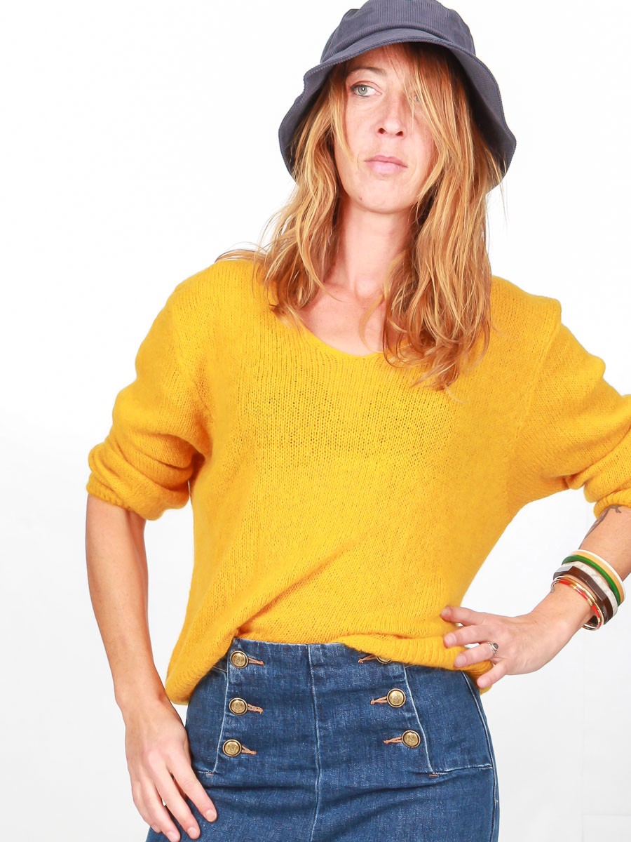 Accueil > Femmes > Pulls et gilets > Pulls > Pull Myrrha baby alpaga Moutarde