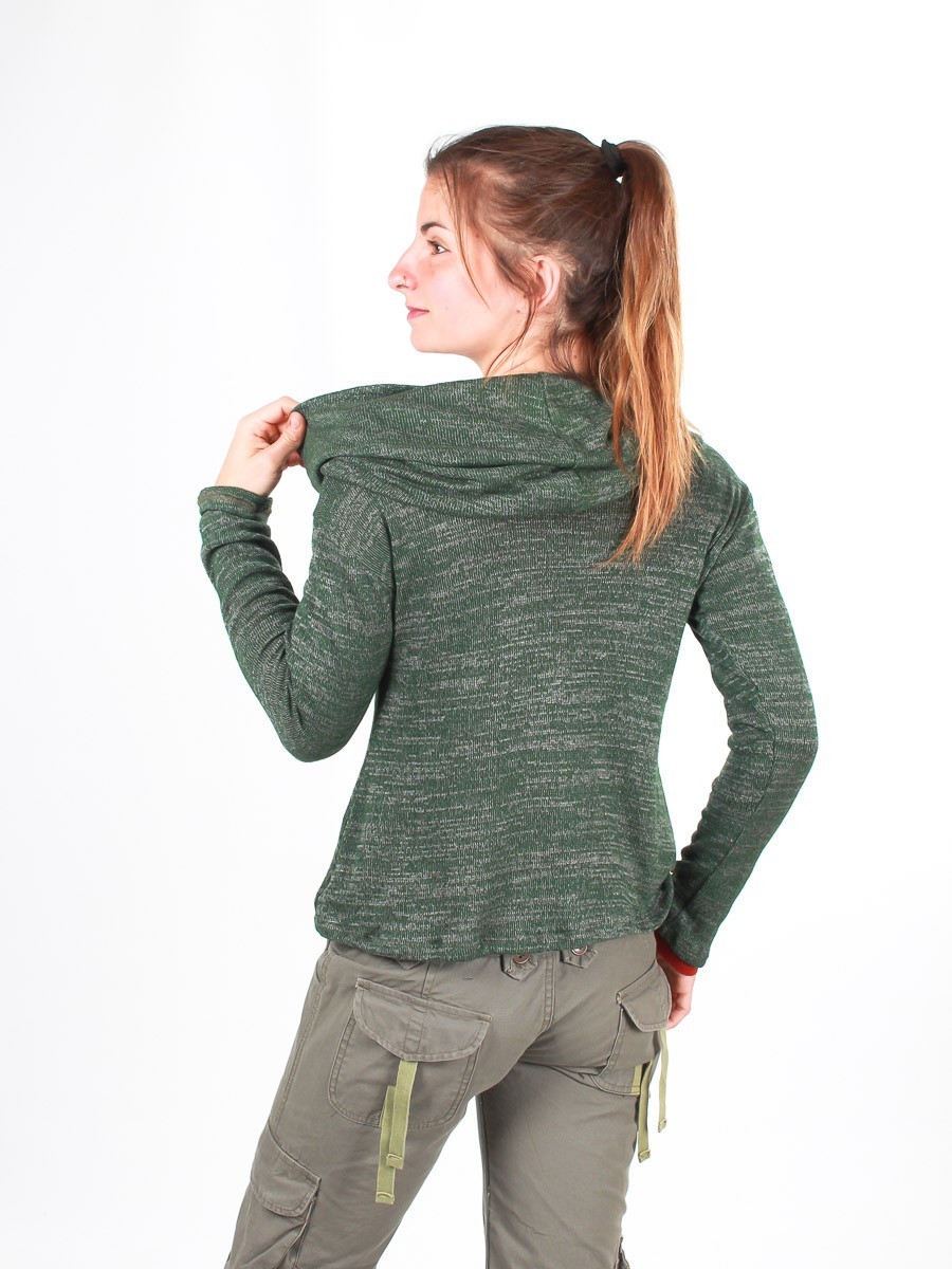 Pull chiné bi-colors : Effet drapé assuré par son grand col cheminé qui donne toute son originalité.