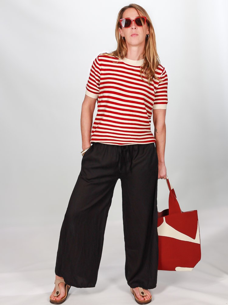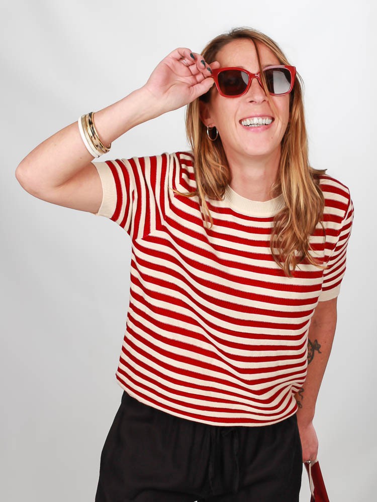 Accueil > Femmes > Pulls et gilets > Pulls > Pull marinière manches courtes maille ajourée Bordeaux
