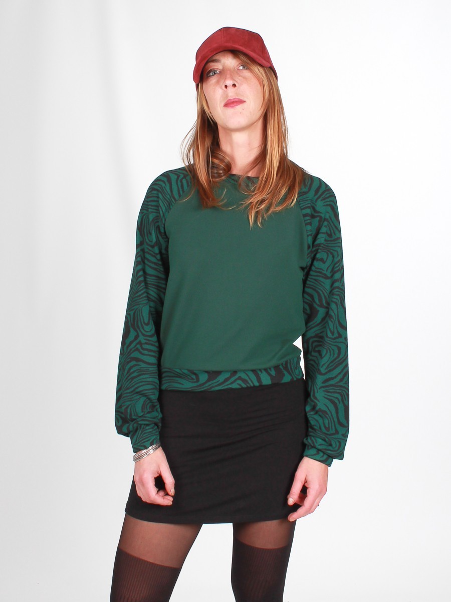 Offrez vous une pointe de nostalgie. Sa coupe ajustée d'inspiration vintage, vous permettra tous les styles, passez facilement du style cocooning confort au style chic décalé mais aussi à un style street. Le tissu imprimé sur les manches contrastées avec le reste du vêtement permettent avant tout d'affirmer encore plus de style et donnera a coup sûr du pep's à votre tenue du jour.