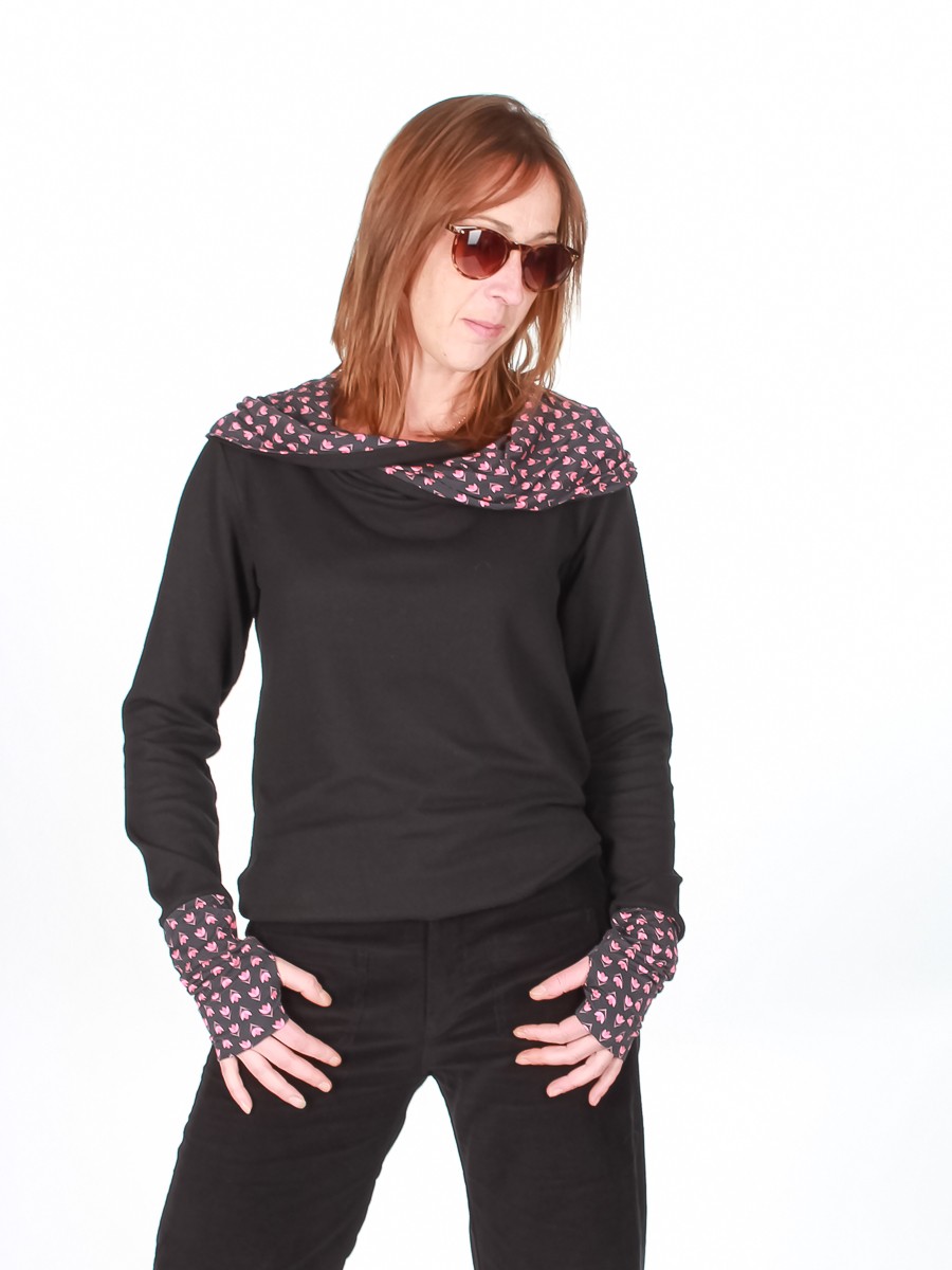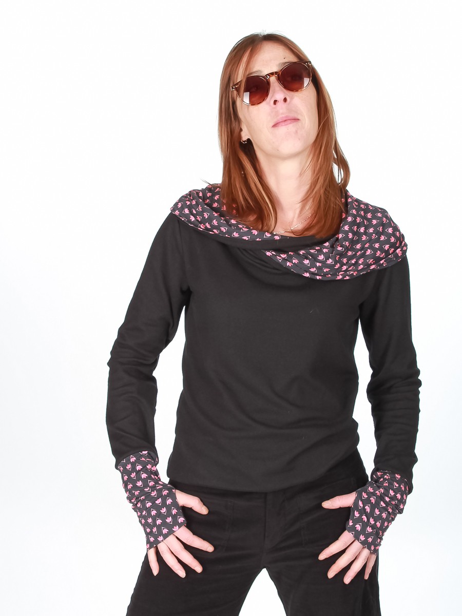 pull original avec son petit col et ses poignets en tissus en tissus. coupe ample.