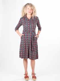 Anna est une pièce intemporelle, agréable à porter, réalisé en Jersey de viscose souple et fluide, elle est facile à enfiler grâce à son boutonnage. Sa coupe évasée offre une allure dansante.... Effet groovy assuré