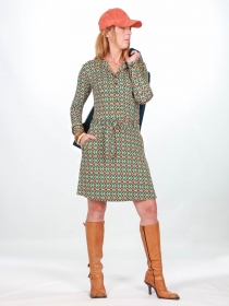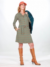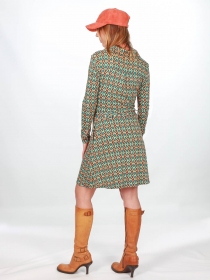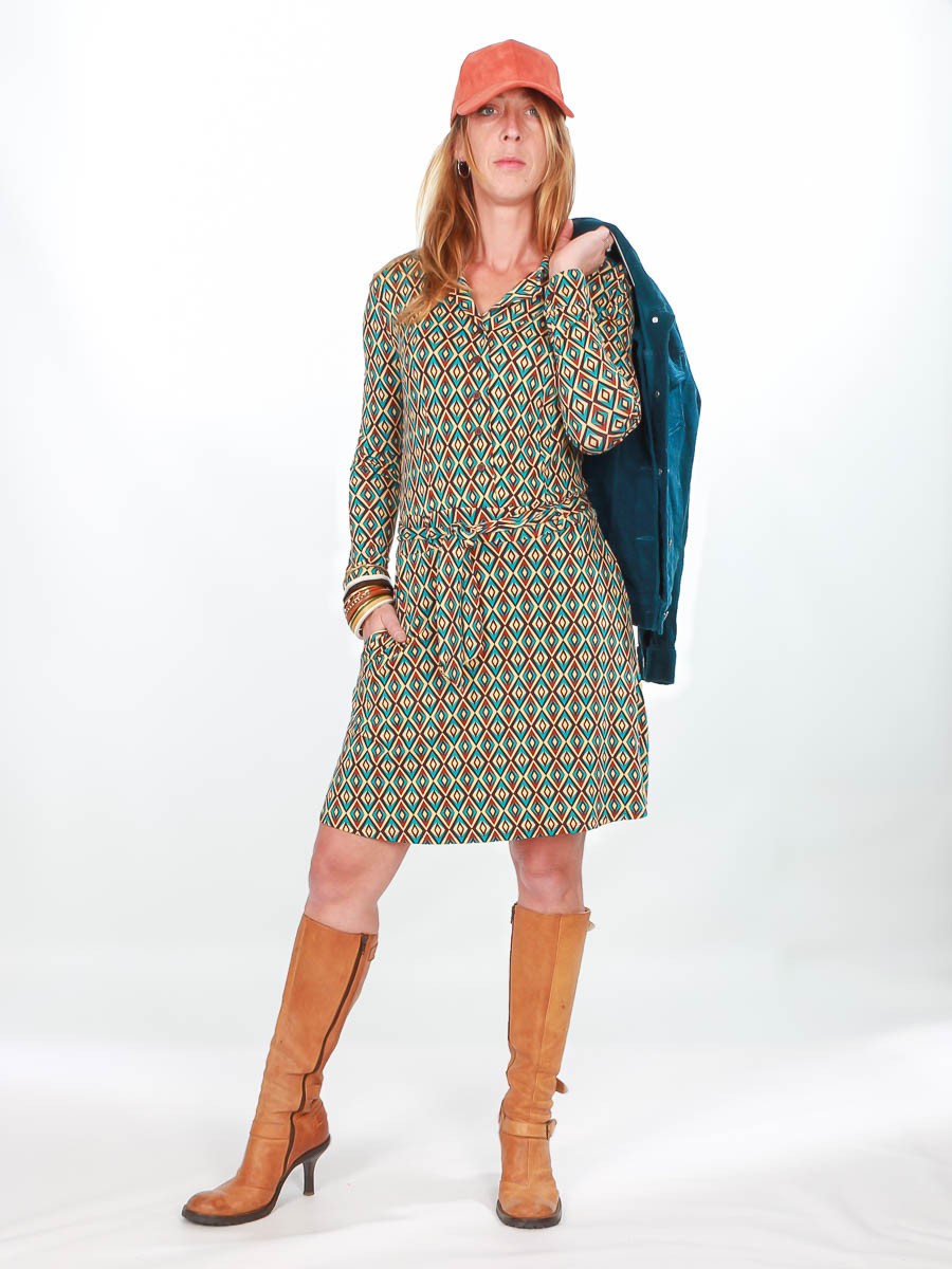 Anna est une pièce intemporelle, agréable à porter, réalisé en Jersey de viscose souple et fluide, elle est facile à enfiler grâce à son boutonnage. Sa coupe évasée offre une allure dansante.... Effet groovy assuré