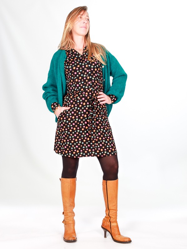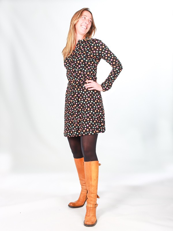 Anna est une pièce intemporelle, agréable à porter, réalisé en Jersey de viscose souple et fluide, elle est facile à enfiler grâce à son boutonnage. Sa coupe évasée offre une allure dansante.... Effet groovy assuré