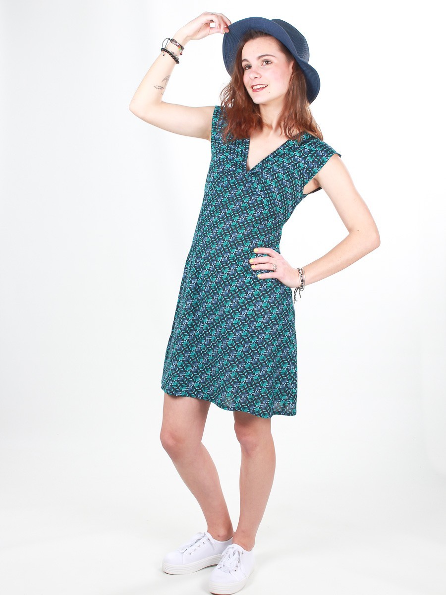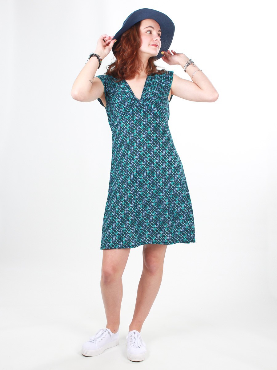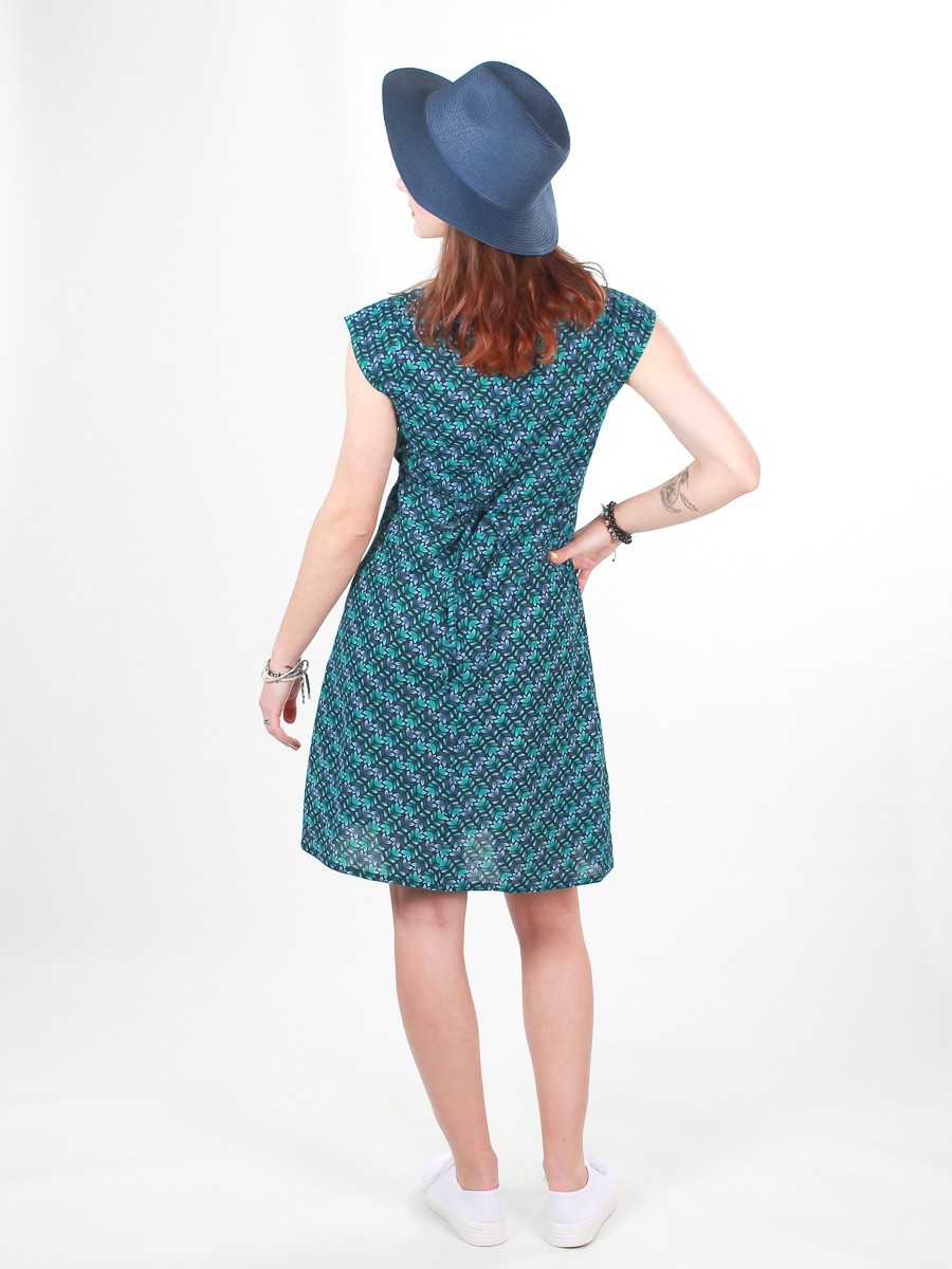 Cette robe Esther est au aussi prometteuse que sa grande soeur, il n'y a que sa longueur de changée, Elle est courte, très facile a mettre pour les beaux jours. On est fan de sa coupe trapèze et son imprimé fait main. Une paire de baskets blanches, et Hop!