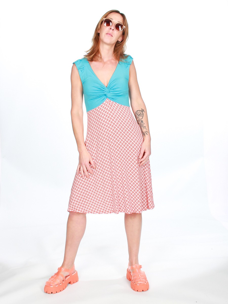 La taille est légèrement ceintrée, mais le plissé sous la poitrine donne de l'amplitude au modèle