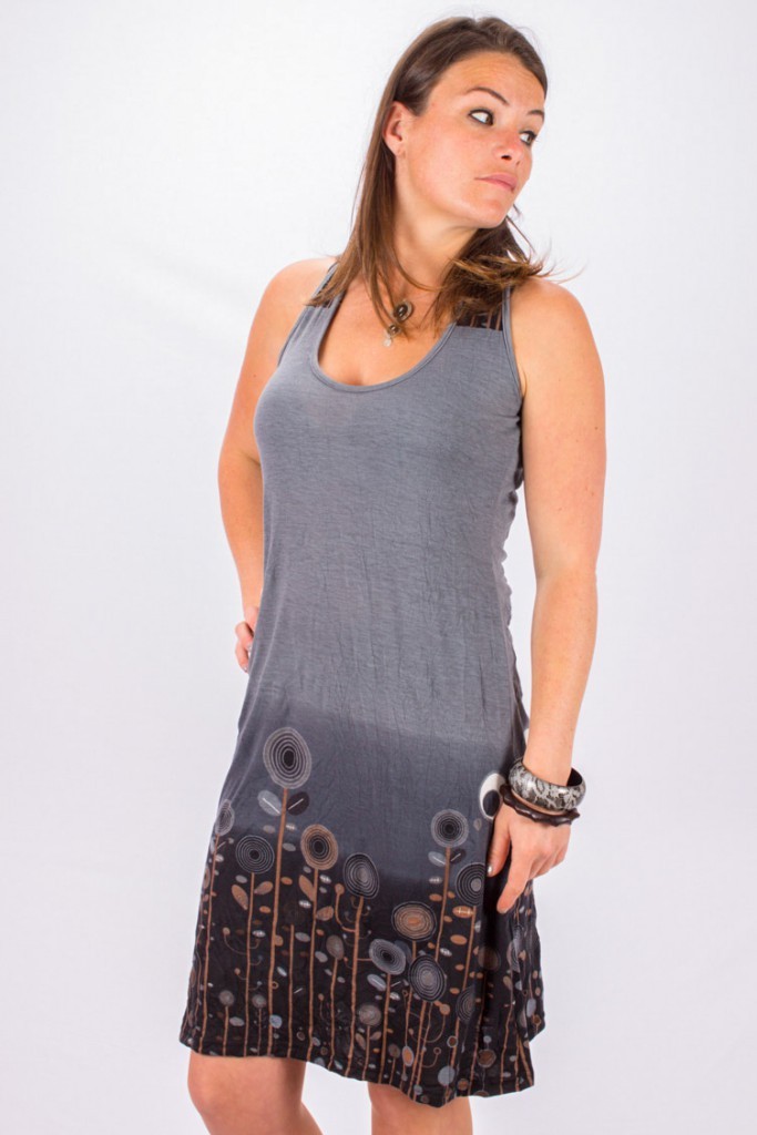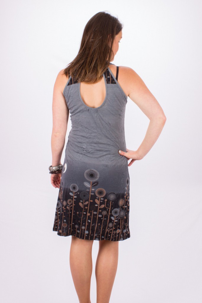 Robe à encolure arrondie et joli dégagé forme "goutte" dans le dos.