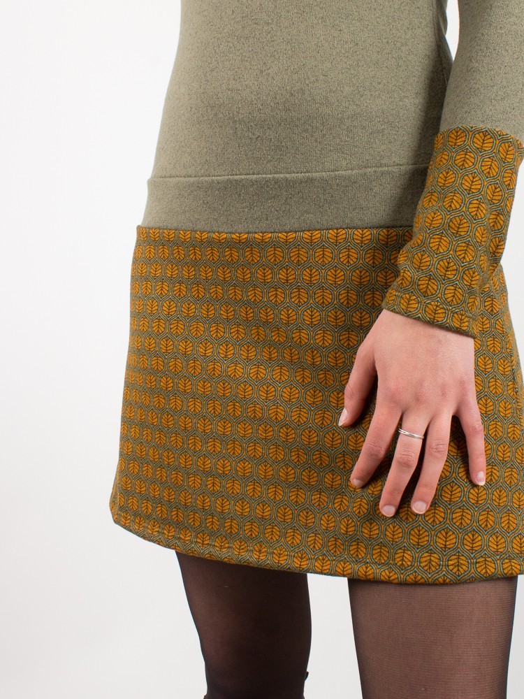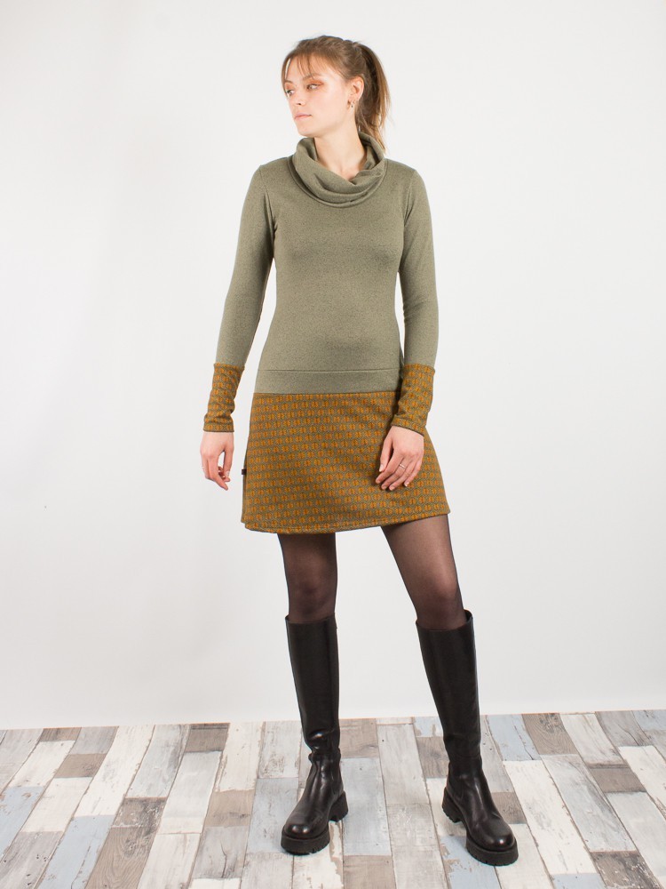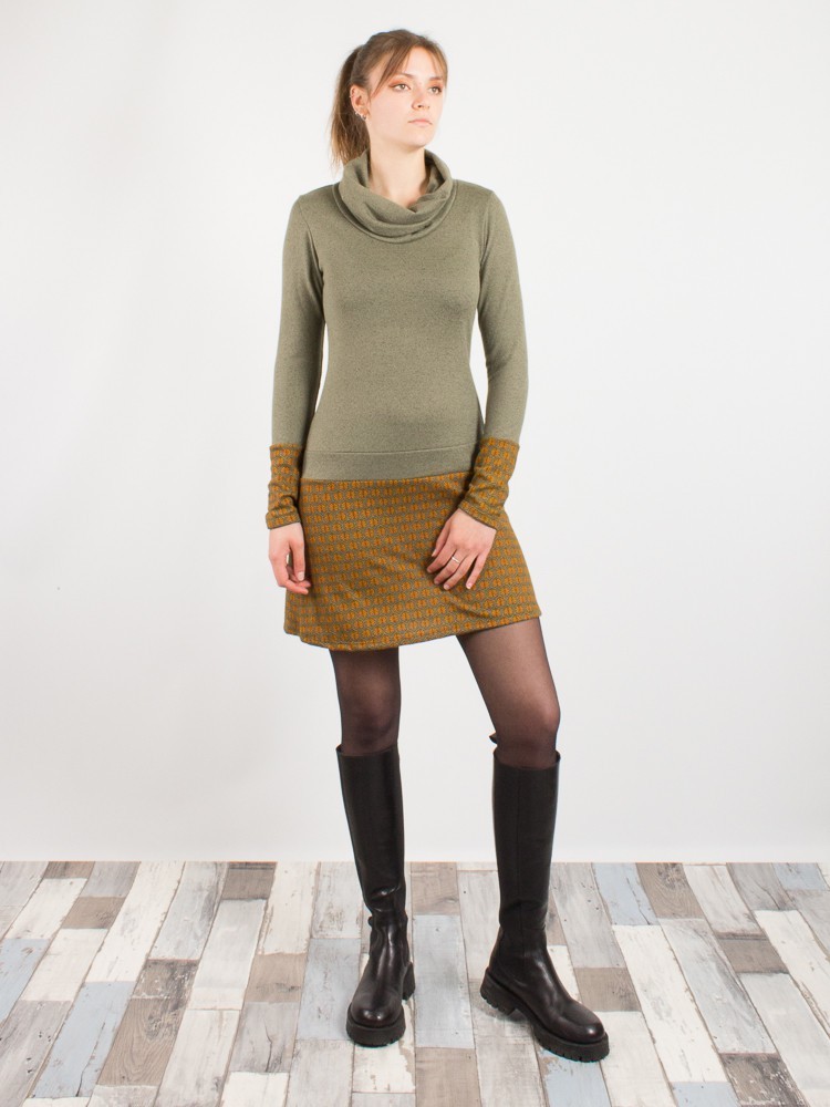 Belle qualité. Sur la photo, le haut de la robe paraît beige mais il est en fait vert kaki. Pour moi, cela est encore mieux mais d'autres clientes pourraient être déçues.