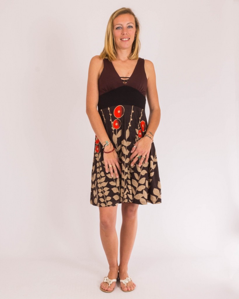 Robe Nouna Digital Flower Brun