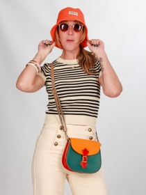 Le sac Aby est l'accessoire coloré parfait, adapté à toutes les occasions. Fait à la main, en cuir 100 % recyclé, alliant style et écoresponsabilité.