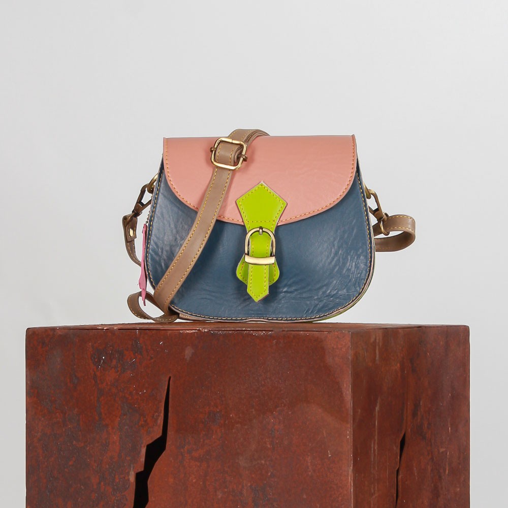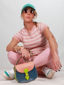 Le sac Aby est l'accessoire coloré parfait, adapté à toutes les occasions. Fait à la main, en cuir 100 % recyclé, alliant style et écoresponsabilité.