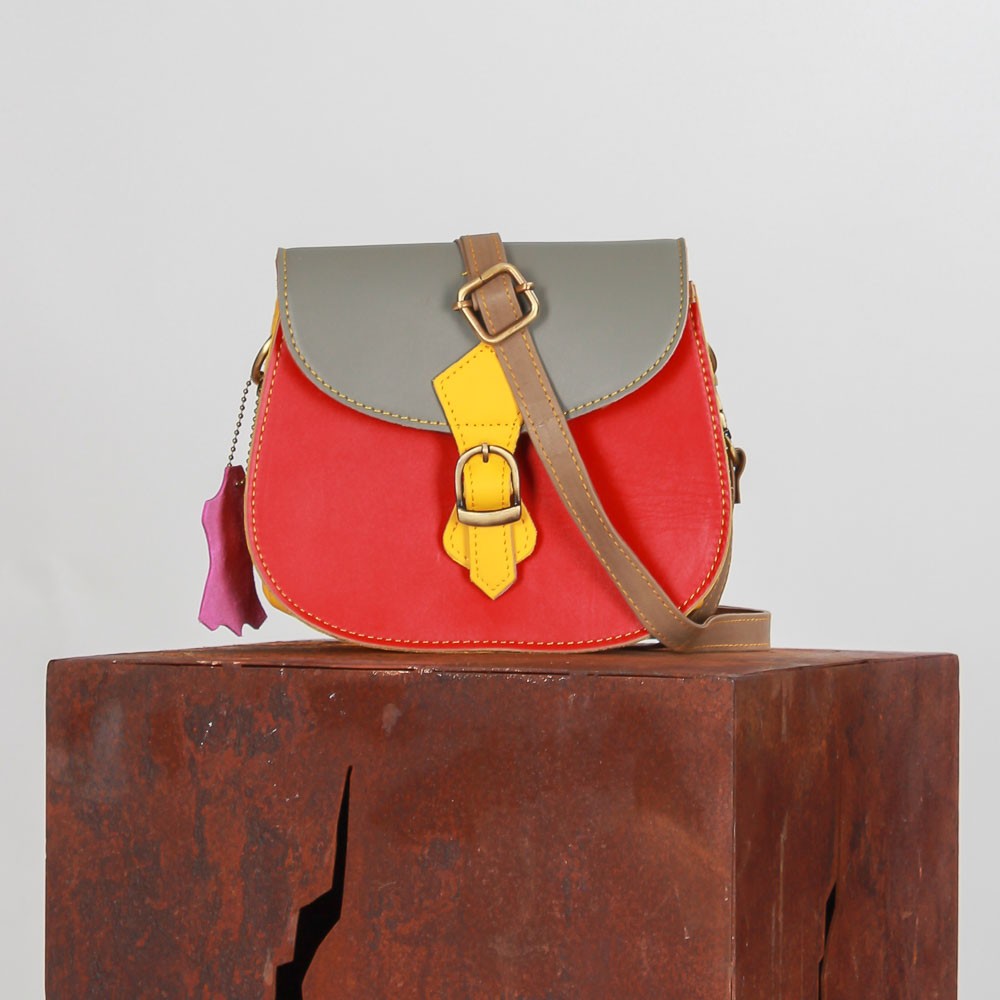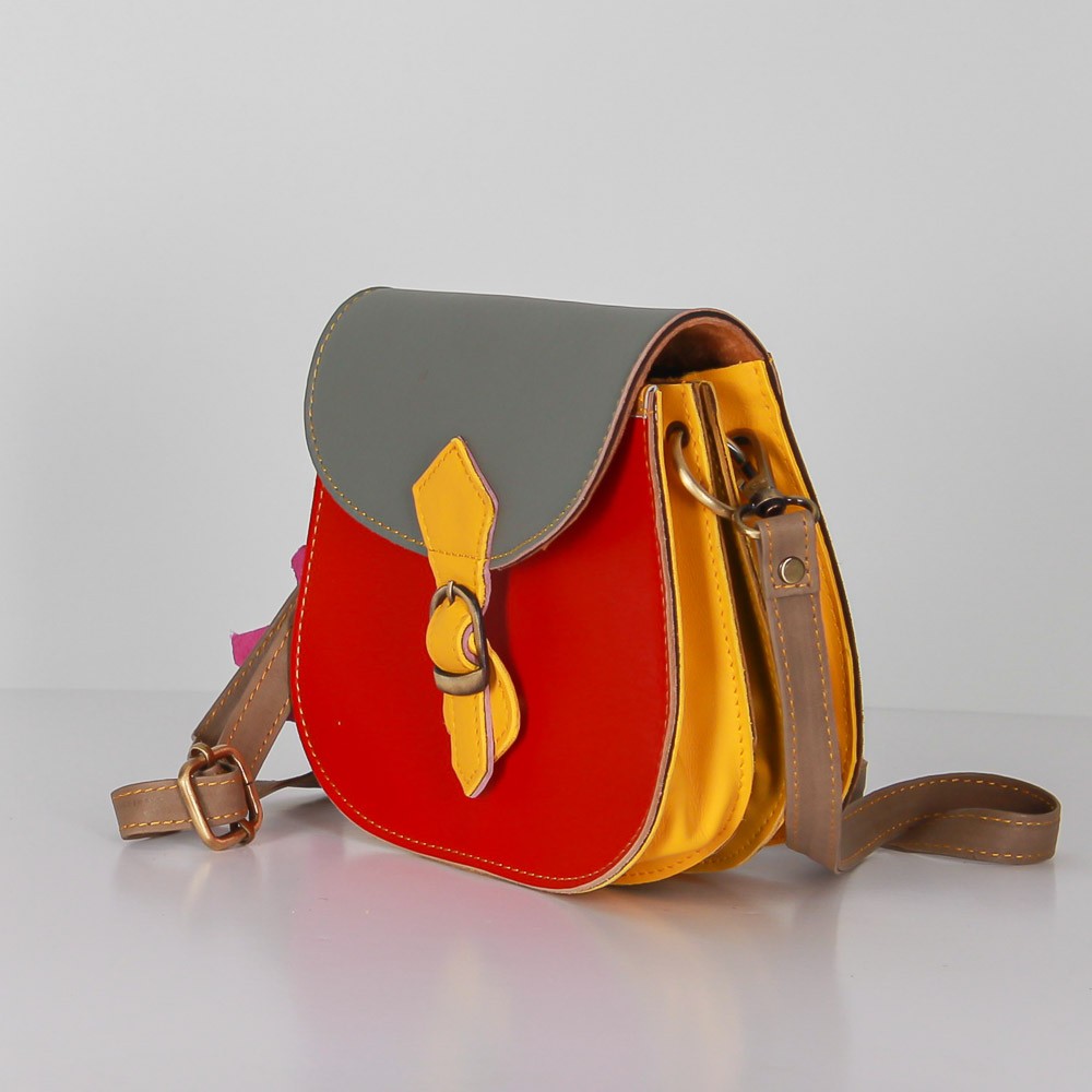 Le sac Aby est l'accessoire coloré parfait, adapté à toutes les occasions. Fait à la main, en cuir 100 % recyclé, alliant style et écoresponsabilité.