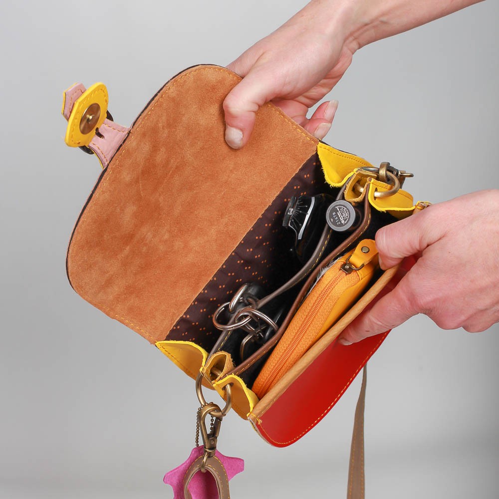 Avec ses trois compartiments intérieurs séparés, il vous permet de ranger facilement vos essentiels : téléphone, portefeuille, clés et cosmétiques.